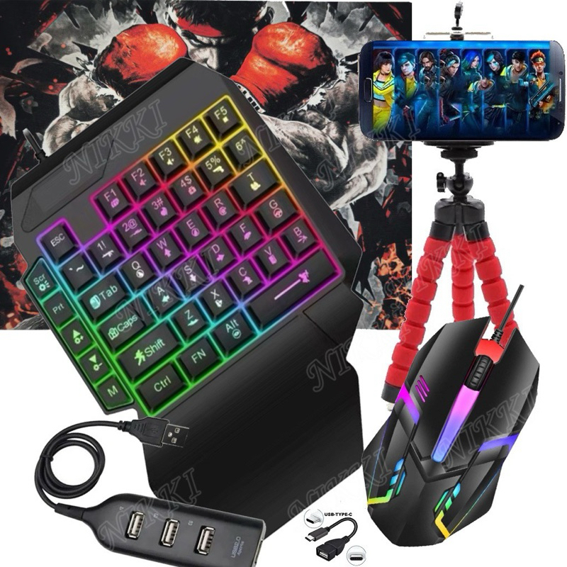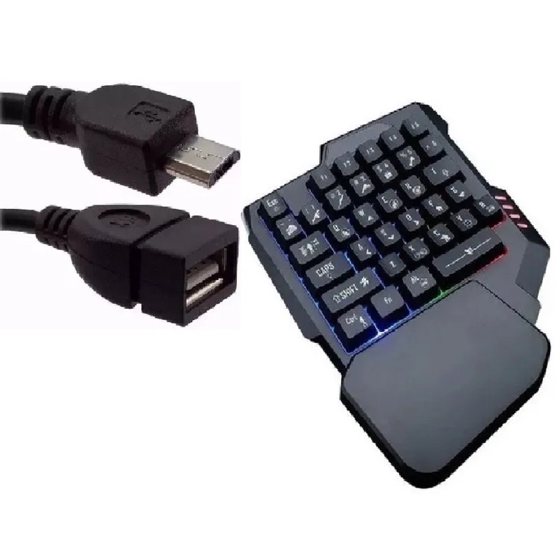 Kit Teclado de Uma Mão Rgb Led Para Celular Com Cabo Otg Micro Usb, Tipo CGamer Jogos