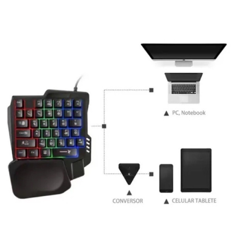 Kit Teclado e Mouse Gamer Luminoso Ergonômico Teclado de Uma Mão Promoção