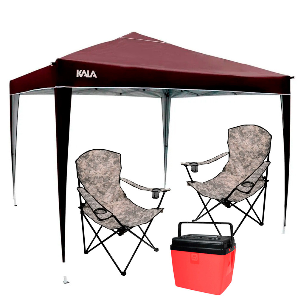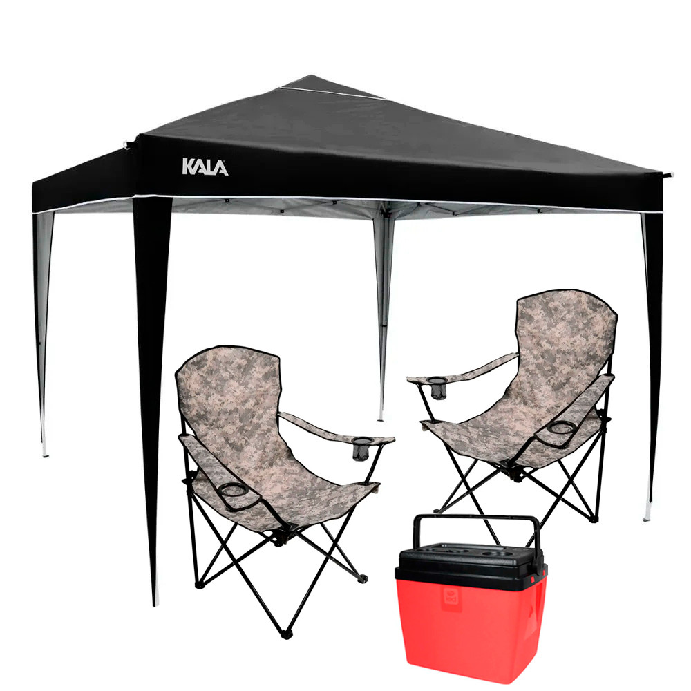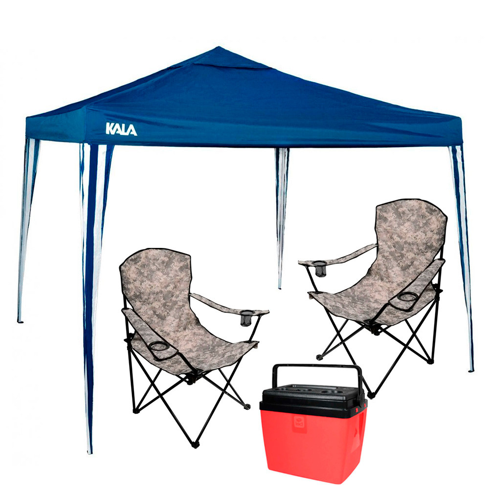 Kit Tenda Gazebo 3x3 Metros 2 Cadeira Dobrável Camuflada Cooler 28 Litros Belfix Kir Praia e Pesca