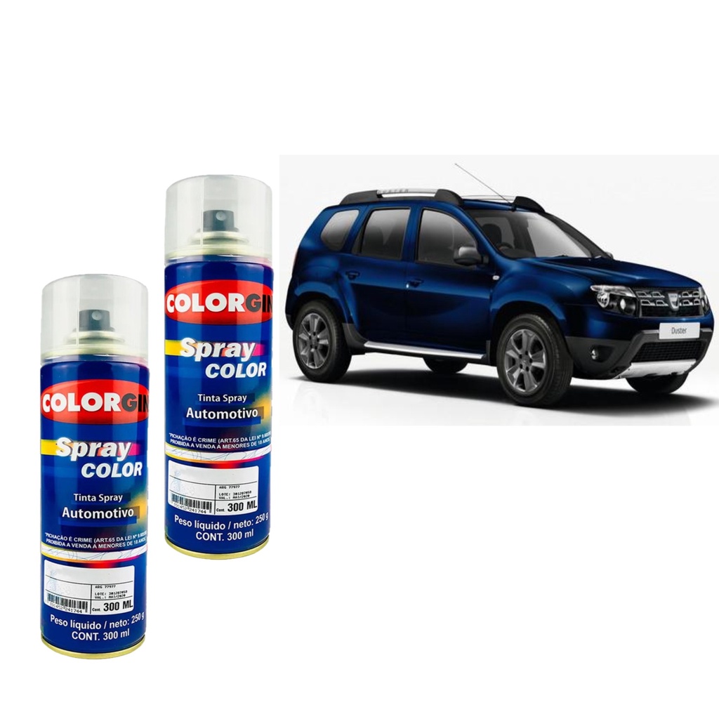 Kit Tinta Automotiva Spray reparos de pintura Azul Iron Renault 300ml + Verniz