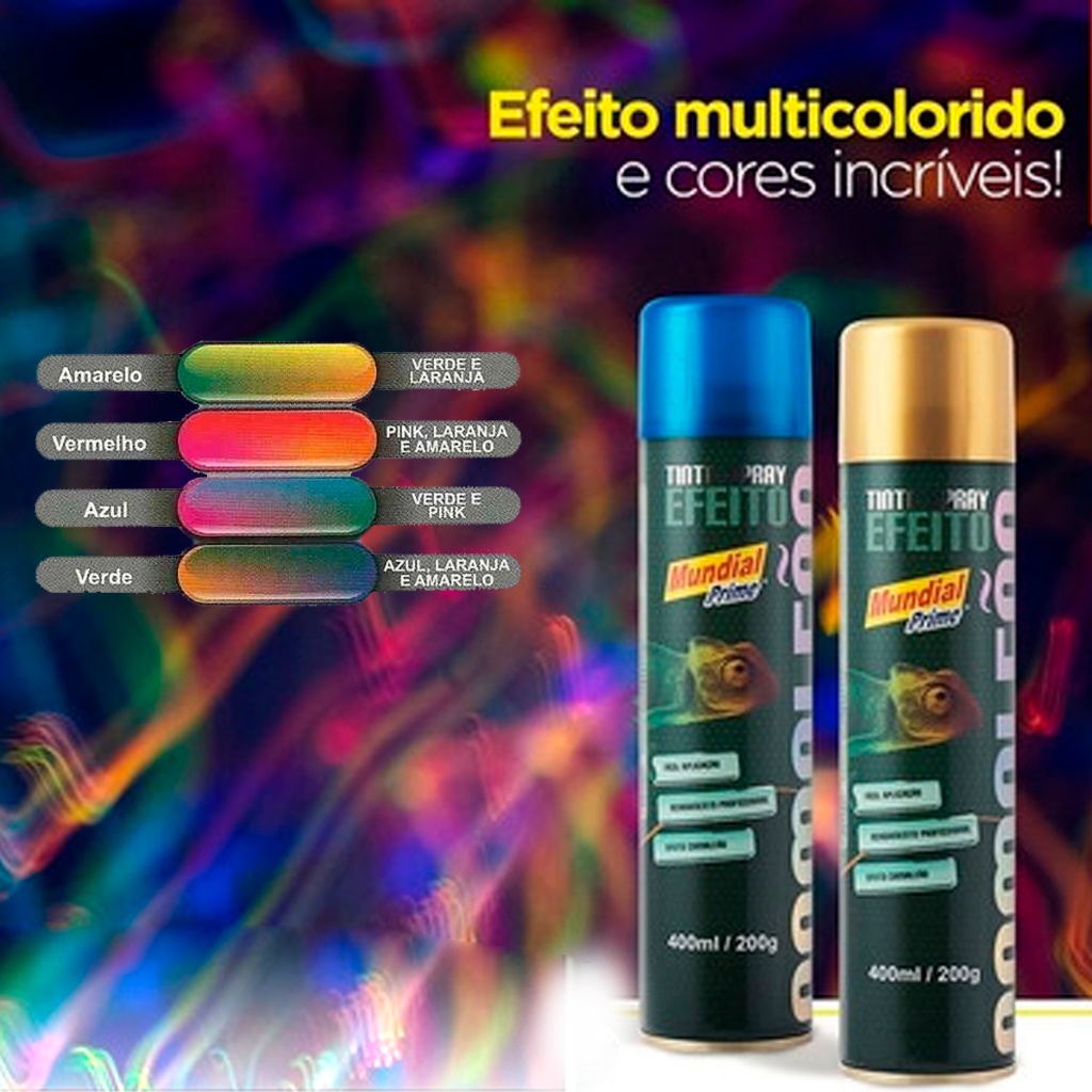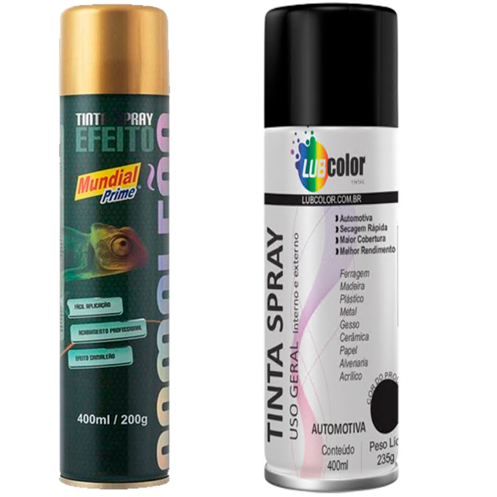 Kit Tinta Spray Efeito Camaleão + Preto Fosco Para Fundo Bike Plástico Metal Isopor Multiuso