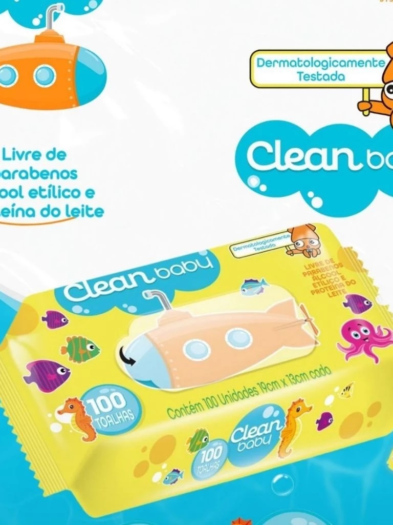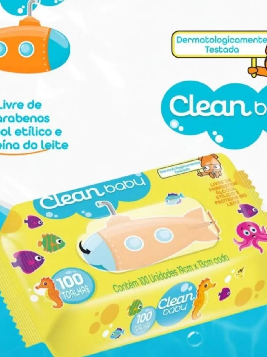 Kit Toalha Umedecida Clean Baby C/100 Cada | Limpeza Suave e Hidratante | Validade 2027