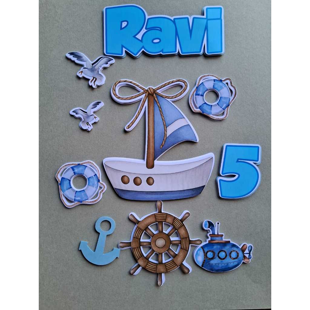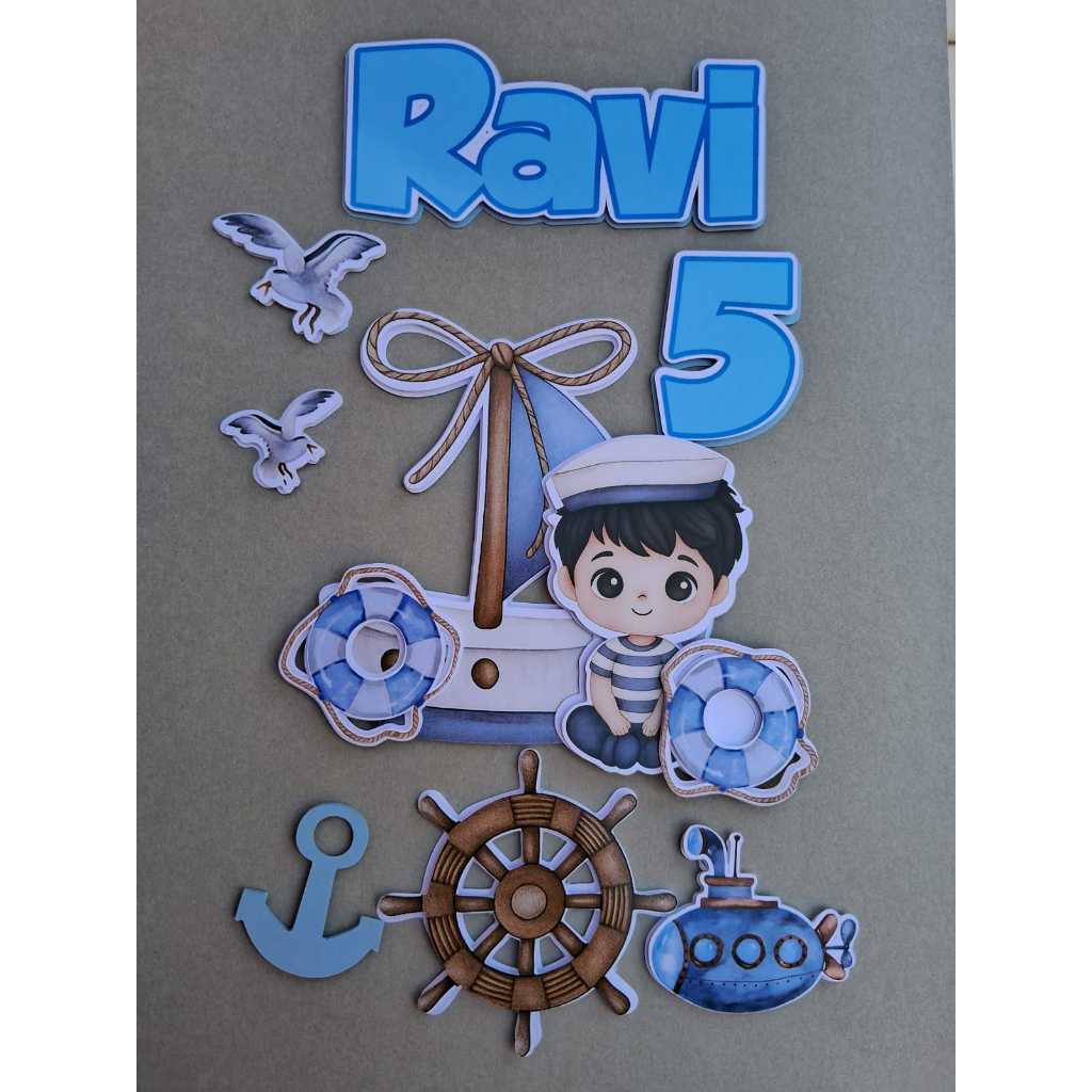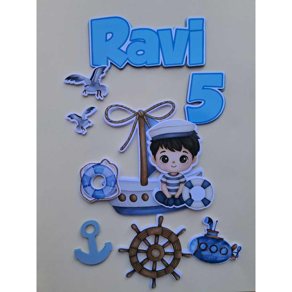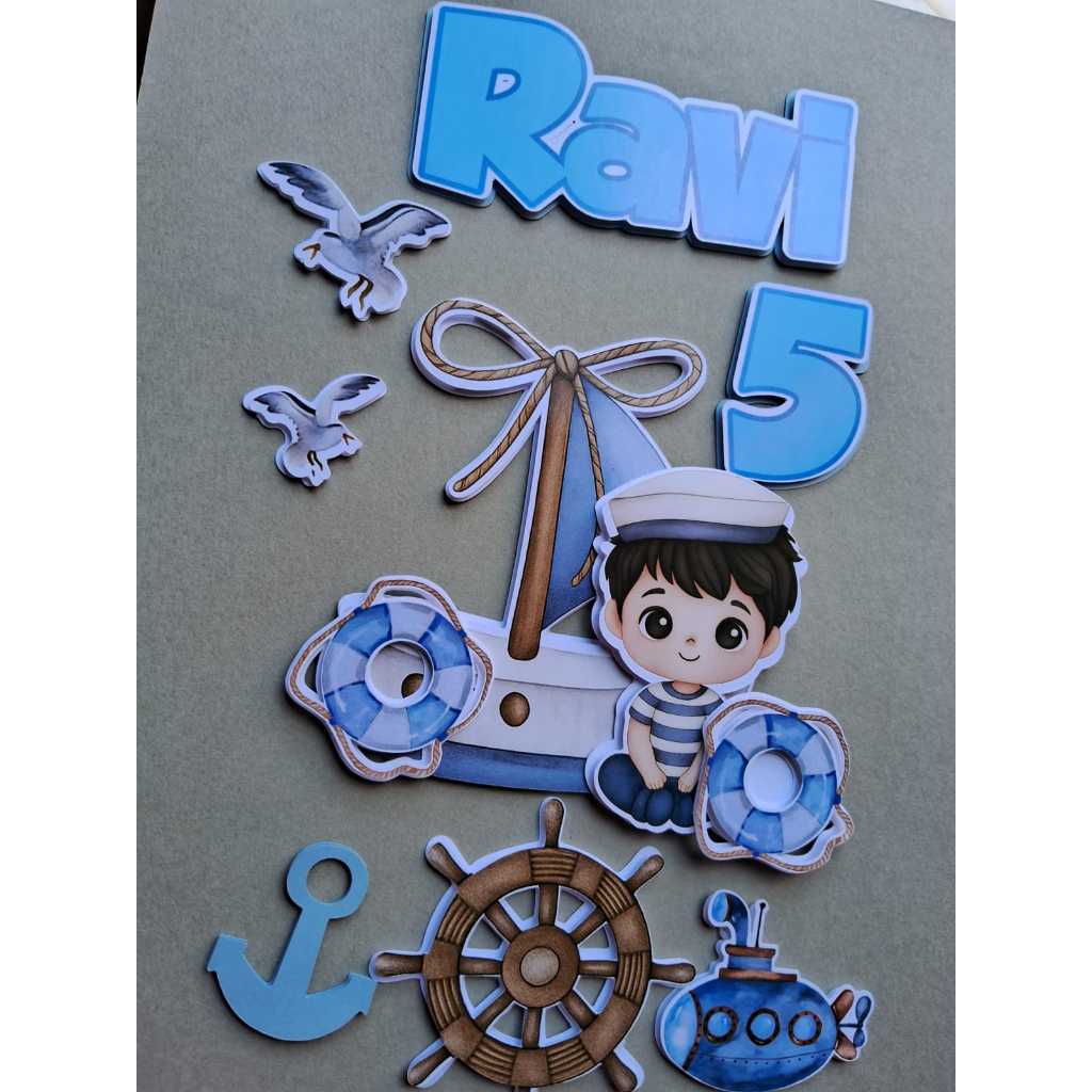 Kit Topo de Bolo Marinheiro + 15 Toppers • Festa Infantil • Aniversário Náutico • Topo de Bolo Menino • Barco • Mar