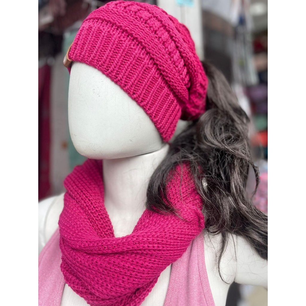 Kit Touca Gorro De Lã Com Furo Para Rabo Cavalo (Feminina) Quentinha Inverno Frio Estilo e Cachecol
