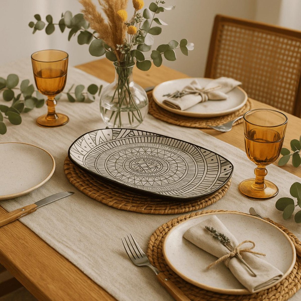Kit Travessas Boho 20x1.5x9.5CM + Travessas Boho 29x1.5x14Cm Cerâmica