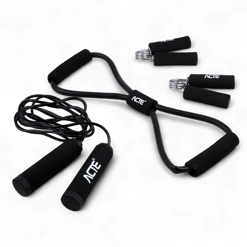 Kit Treino Funcional Fitness Exercício Portátil 3 em 1 Corda + Extensor + Hand Grip + Bolsa - Acte