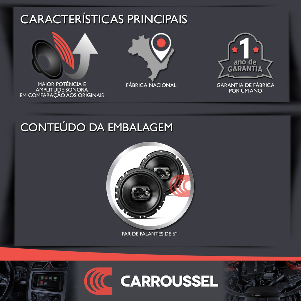 Kit Triaxial 6 polegadas 120w Pioneer TS-1790BR Alto-falante Portas Frente Dianteira Som Carro