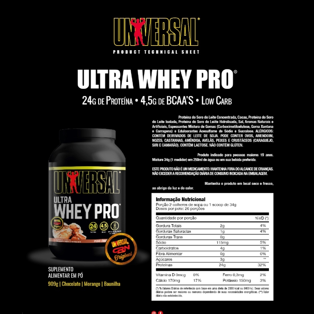 Kit Ultra Whey Pro 900g + Glutamina 300g + Coqueteleira - Universal