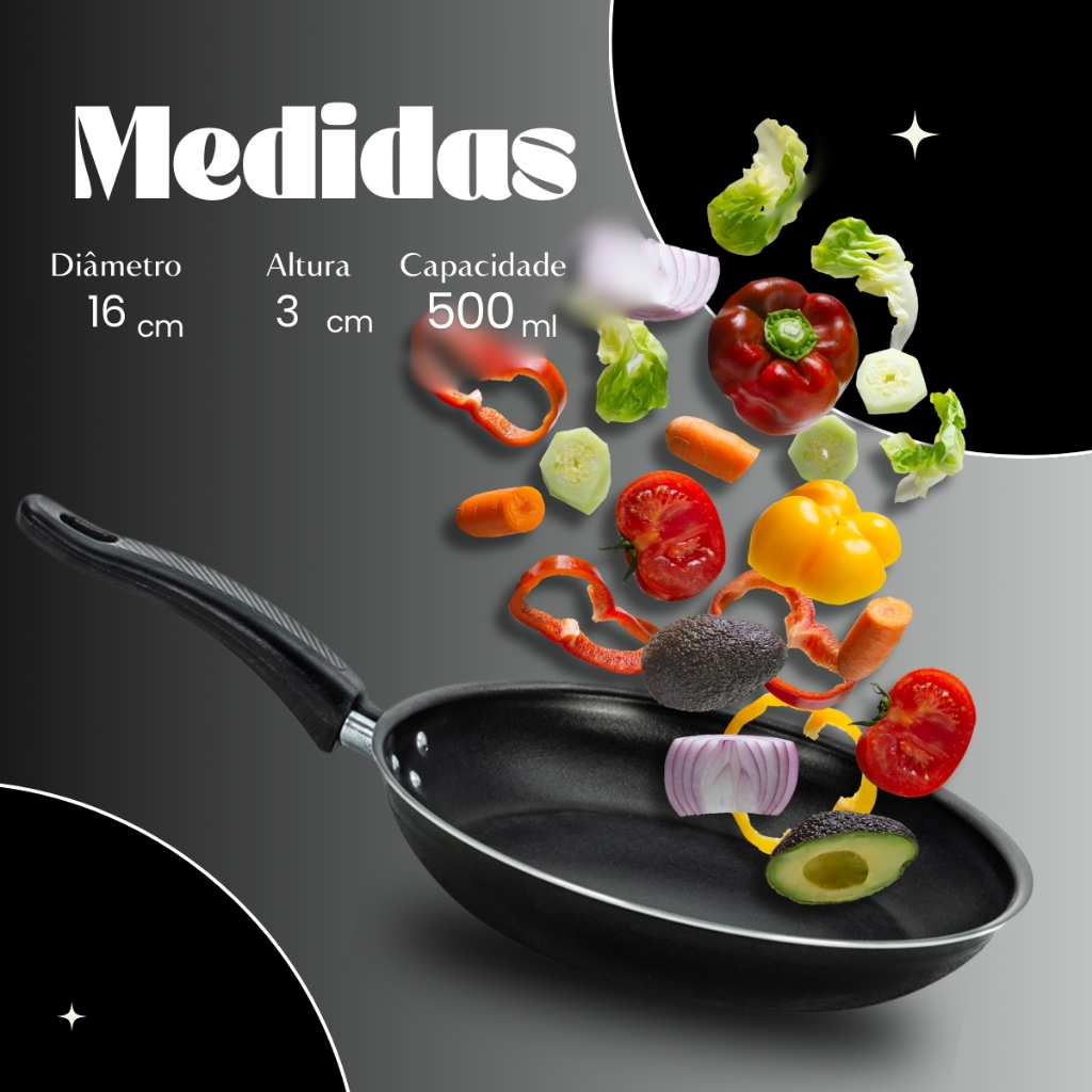 Kit Uma Frigideira Francesa Antiaderente Preta N16 e Espatula