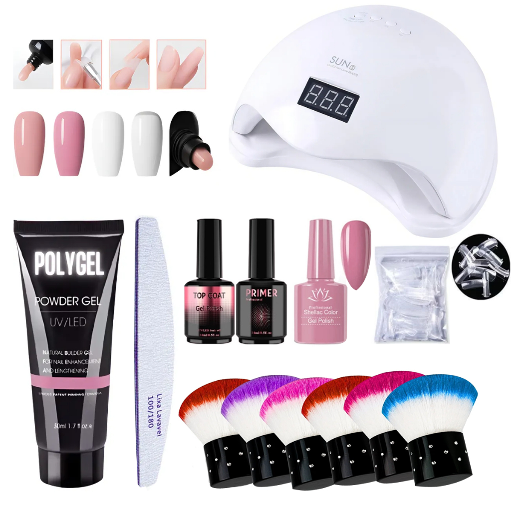 Kit Unha Polygel cabine sun led/UV Molde F1 Lixa de tips Unhas Postiça Profissional
