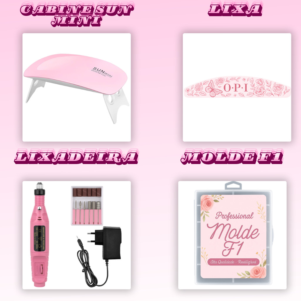 Kit Unha de Gel completo Iniciante Manicure Alongamento Cabine Sun Mini Unhas Polygel Molde F1 Lixa Lixadeira Elétrica