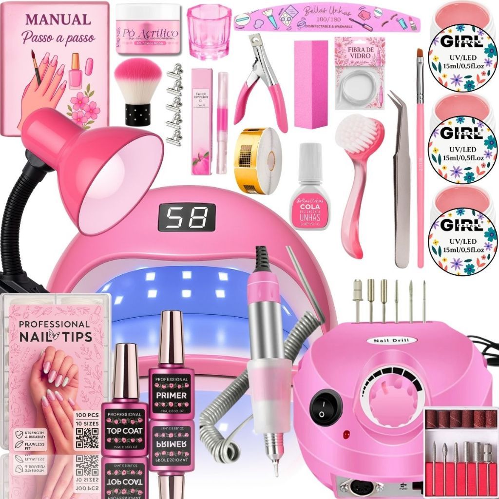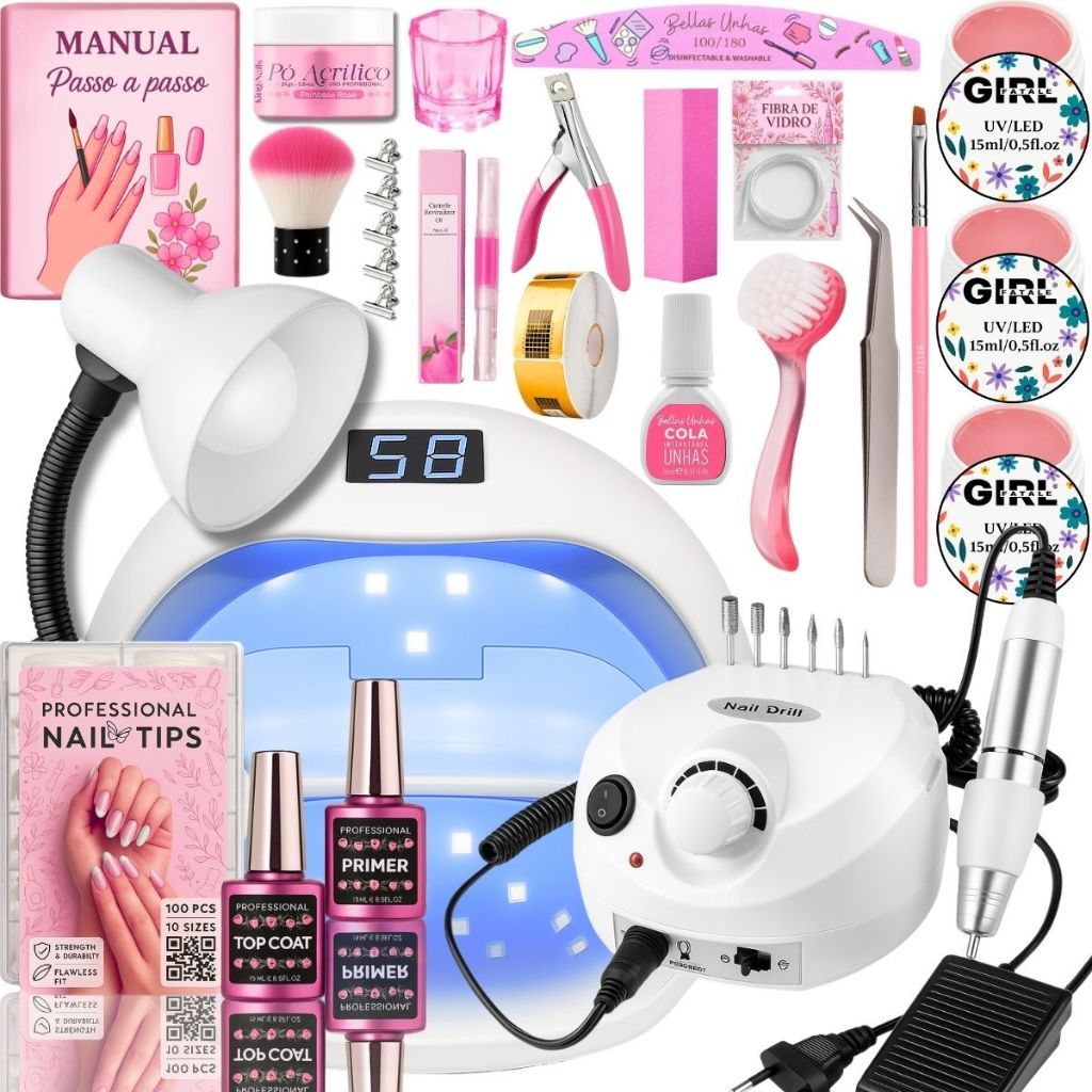 Kit Unhas Gel Completo Lixadeira Eletrica Motor Porquinho Cabine Sun5 - Envio Imediato