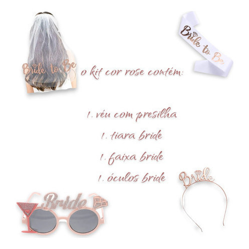 Kit : Véu c/ escrita + Tiara bride rose + Faixa bride tobe rose + Óculos Bride com taca ( novo ) / despedida de solteira