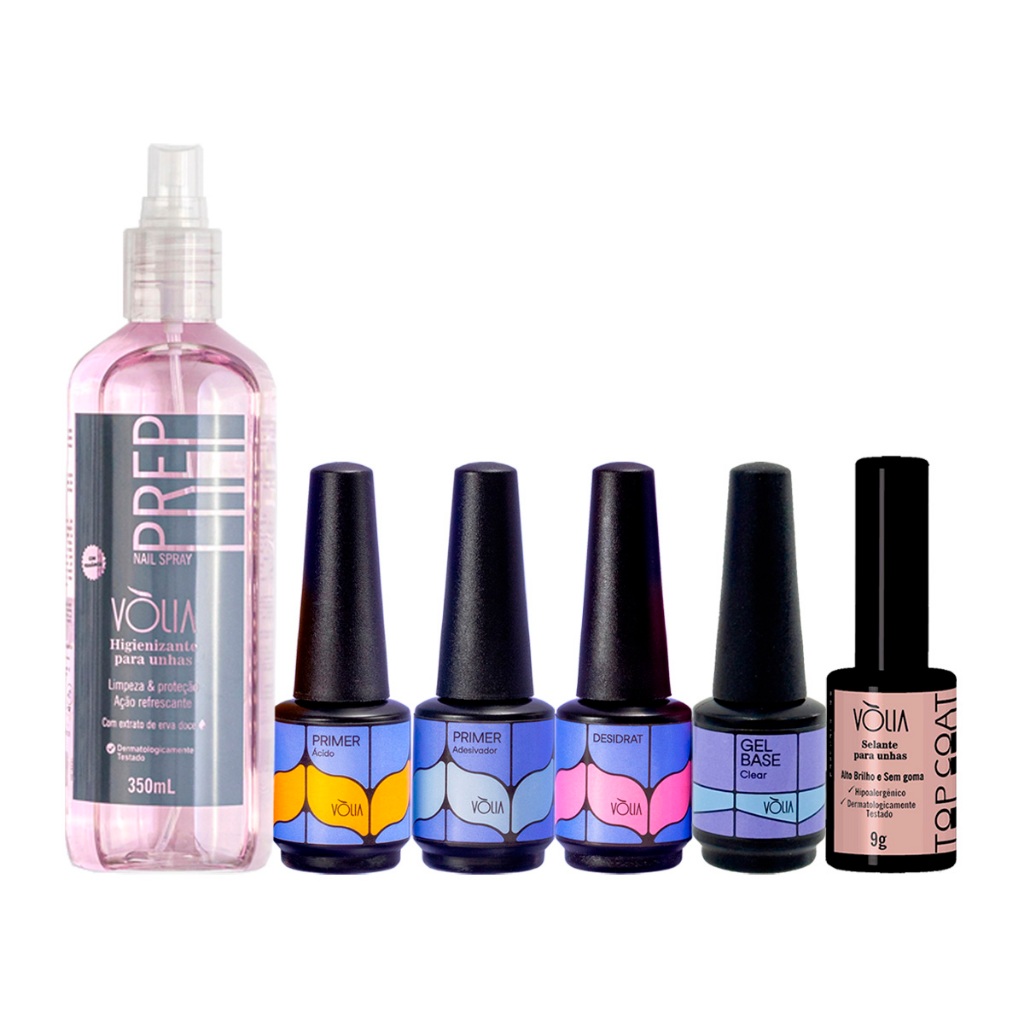 Kit Vòlia - Prep Primer Ác Adesivador Desidrat Gel Capa Base Top Coat Clear