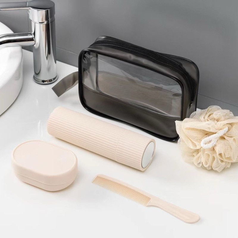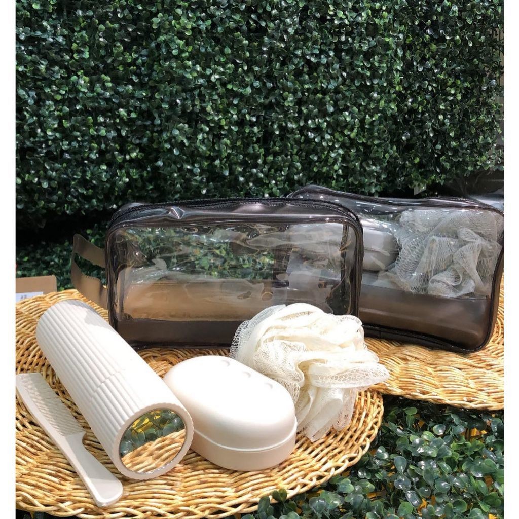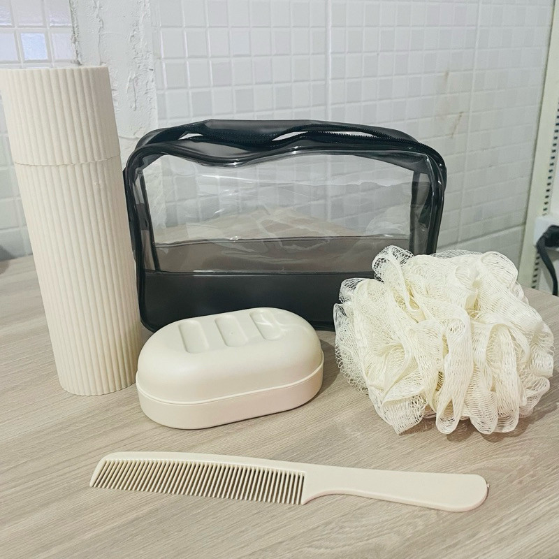 Kit Viagem 5 Peças Com Bolsa Esponja Pente e Ducha
