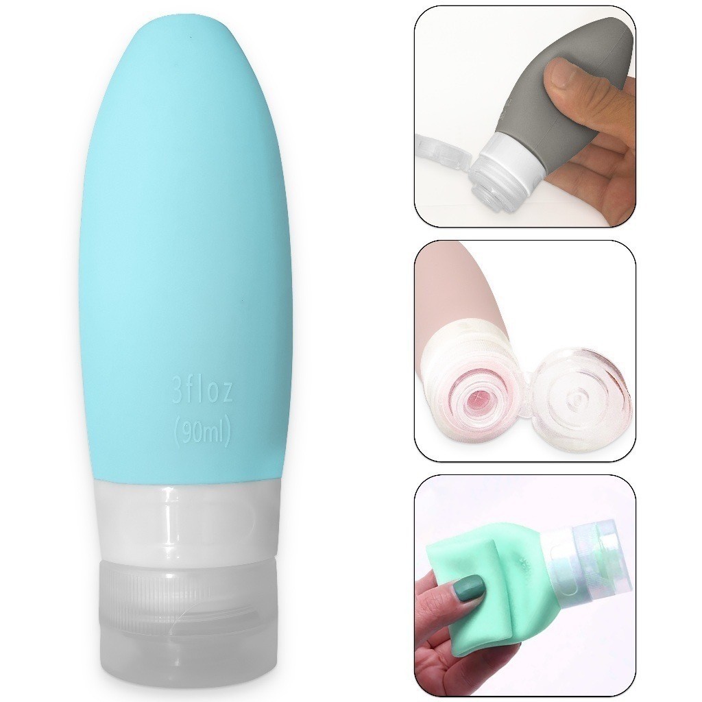 Kit Viagem Porta Shampoo Frascos Pote Creme 4 Peças Mala 90ml de Silicone Reutilizável Lavável