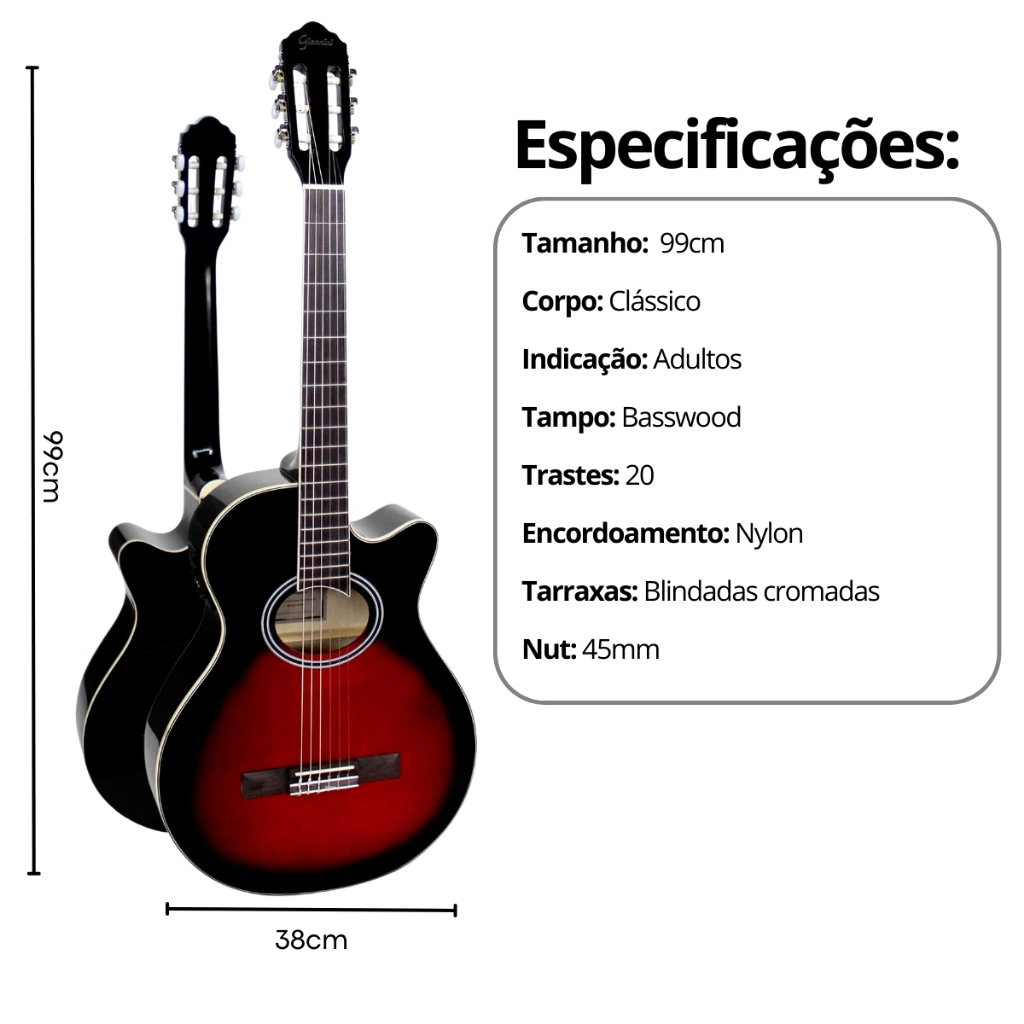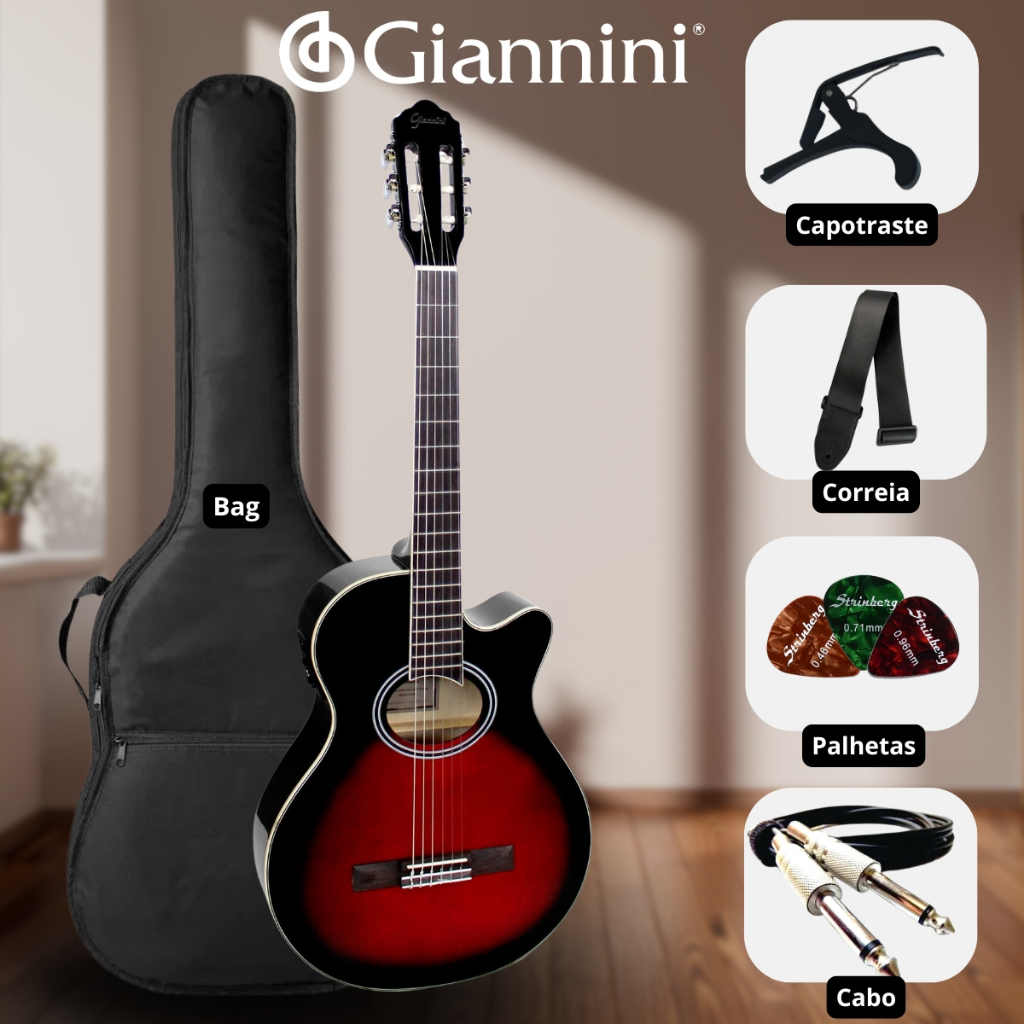 Kit Violão Giannini Elétrico Mini Jumbo Gnf1d Ceq Nylon + Acessórios