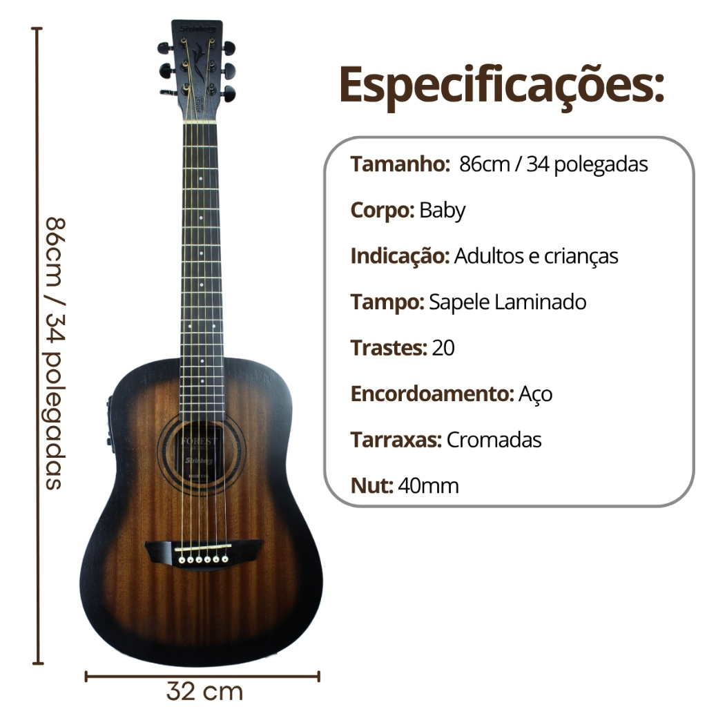 Kit Violão Strinberg Eletrico Fs2b Baby Forest + Acessorios