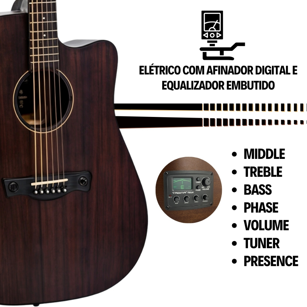 Kit Violão Tagima Kansas Elétrico Latin America Gran Reserva + Acessórios