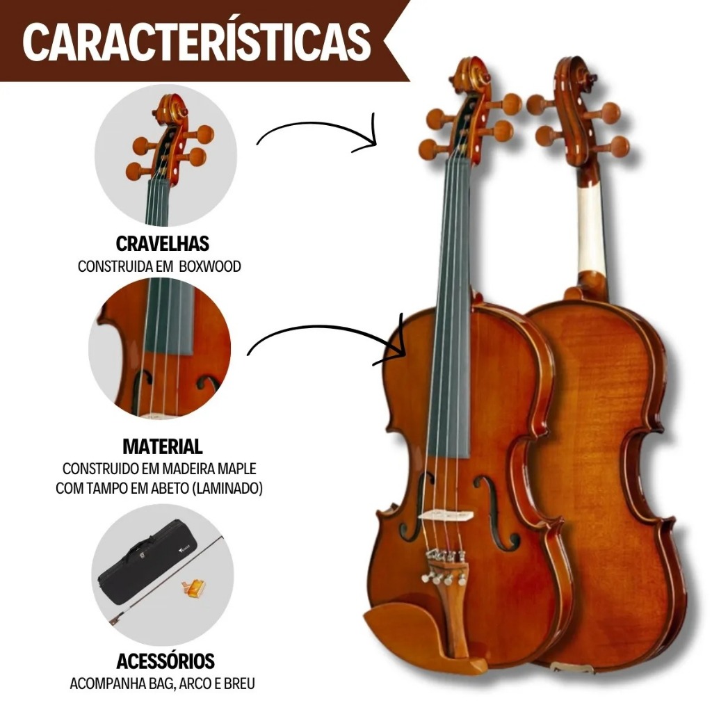 Kit Violino Eagle Ve441 4/4 + Estojo Estante Espaleira Afinador
