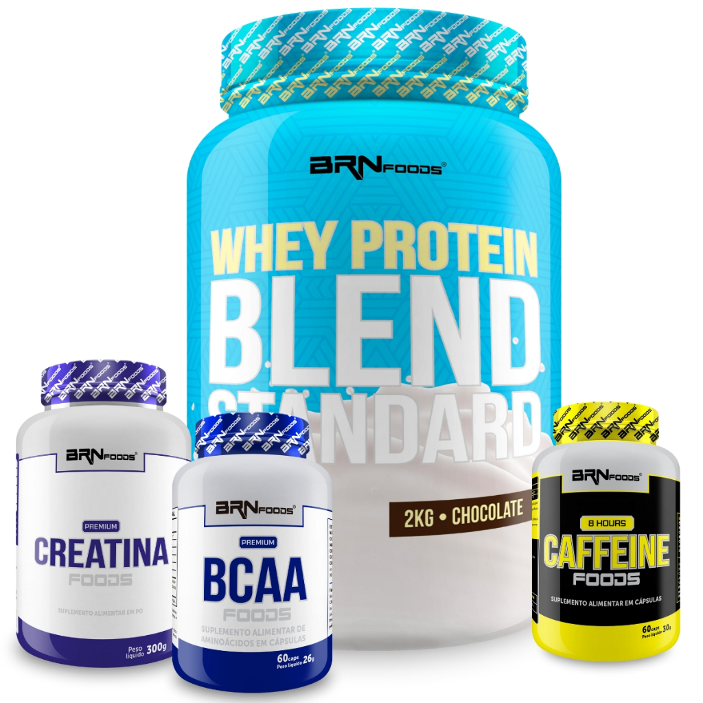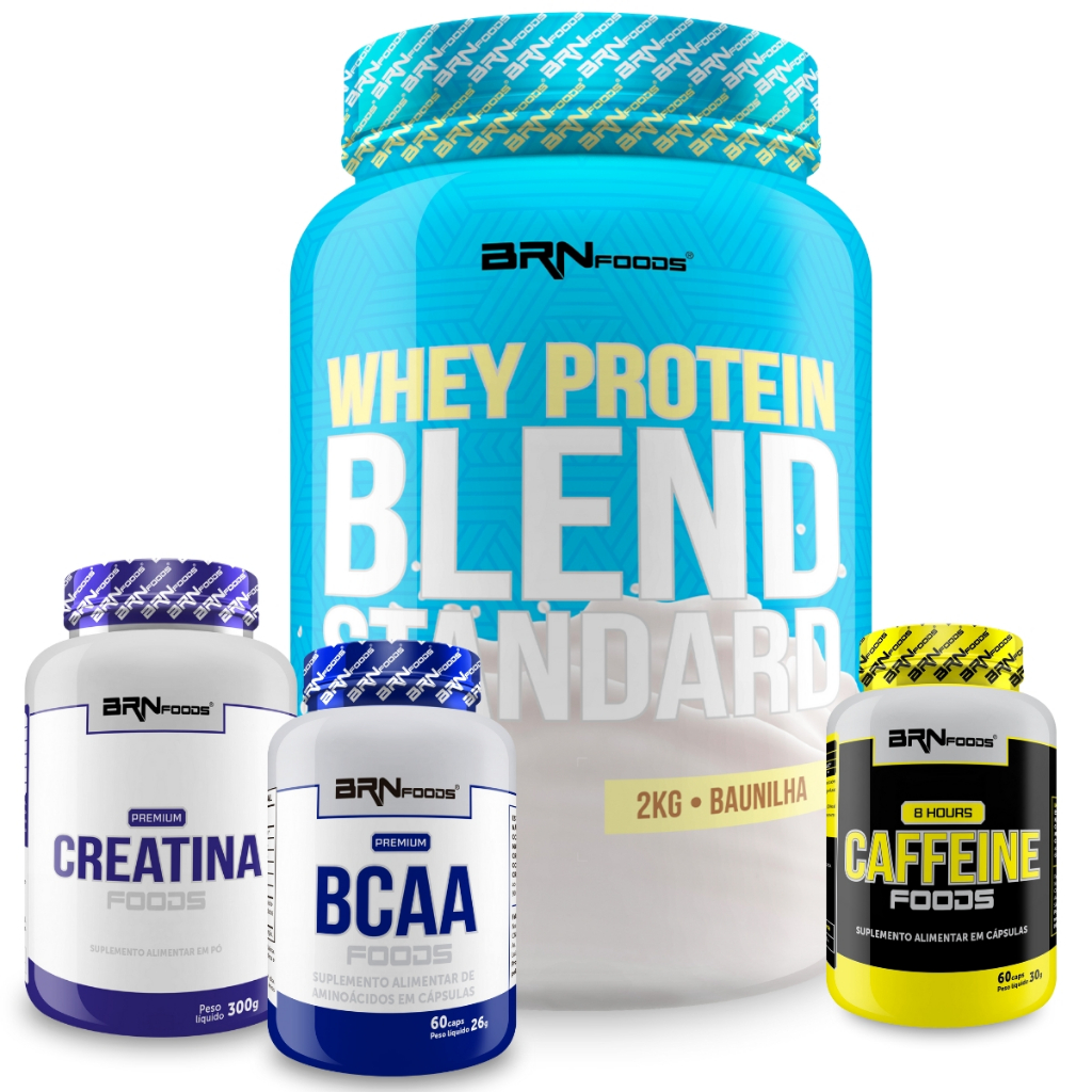 Kit Whey Blend 2kg + Creatina 300g Tangerina + Bcaa 60 Cáps + Cafeina 8 Hours 60 cáps - BRN Foods
