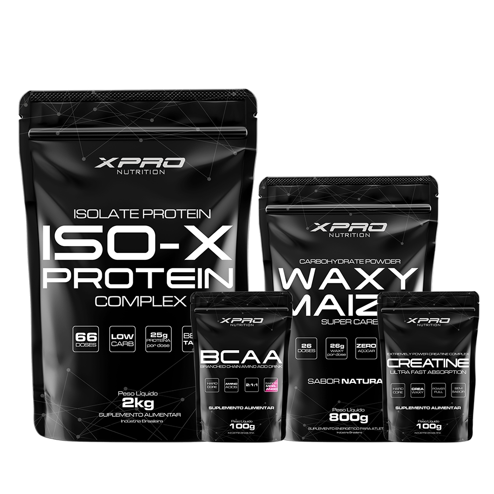 Kit Whey Iso X Protein 2Kg + Creatina 100g + BCAA 100g + Waxy Maize Super Carb 800g - XPro Nutrition