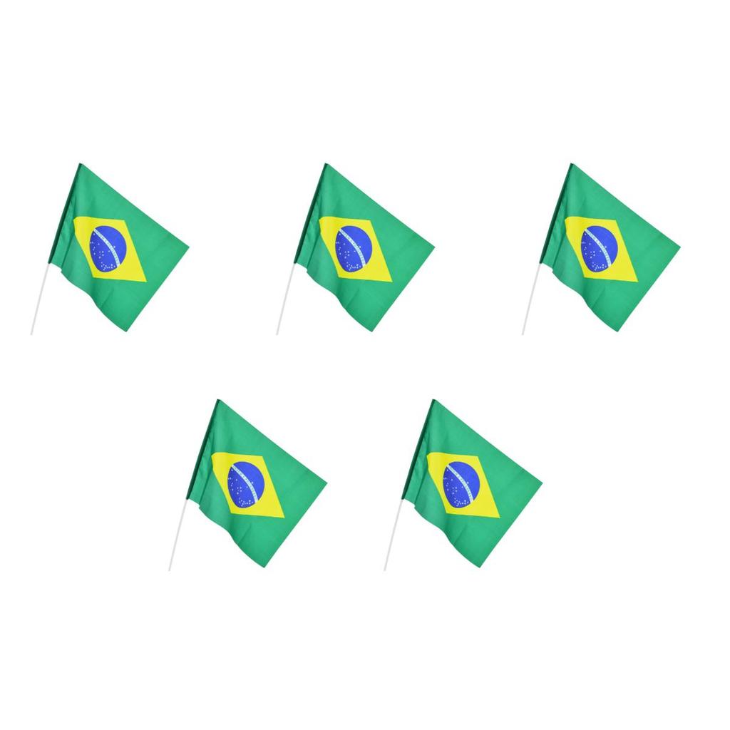Kit bandeiras do Brasil c/Haste 60X90cm C/ 5un Copa do Mundo