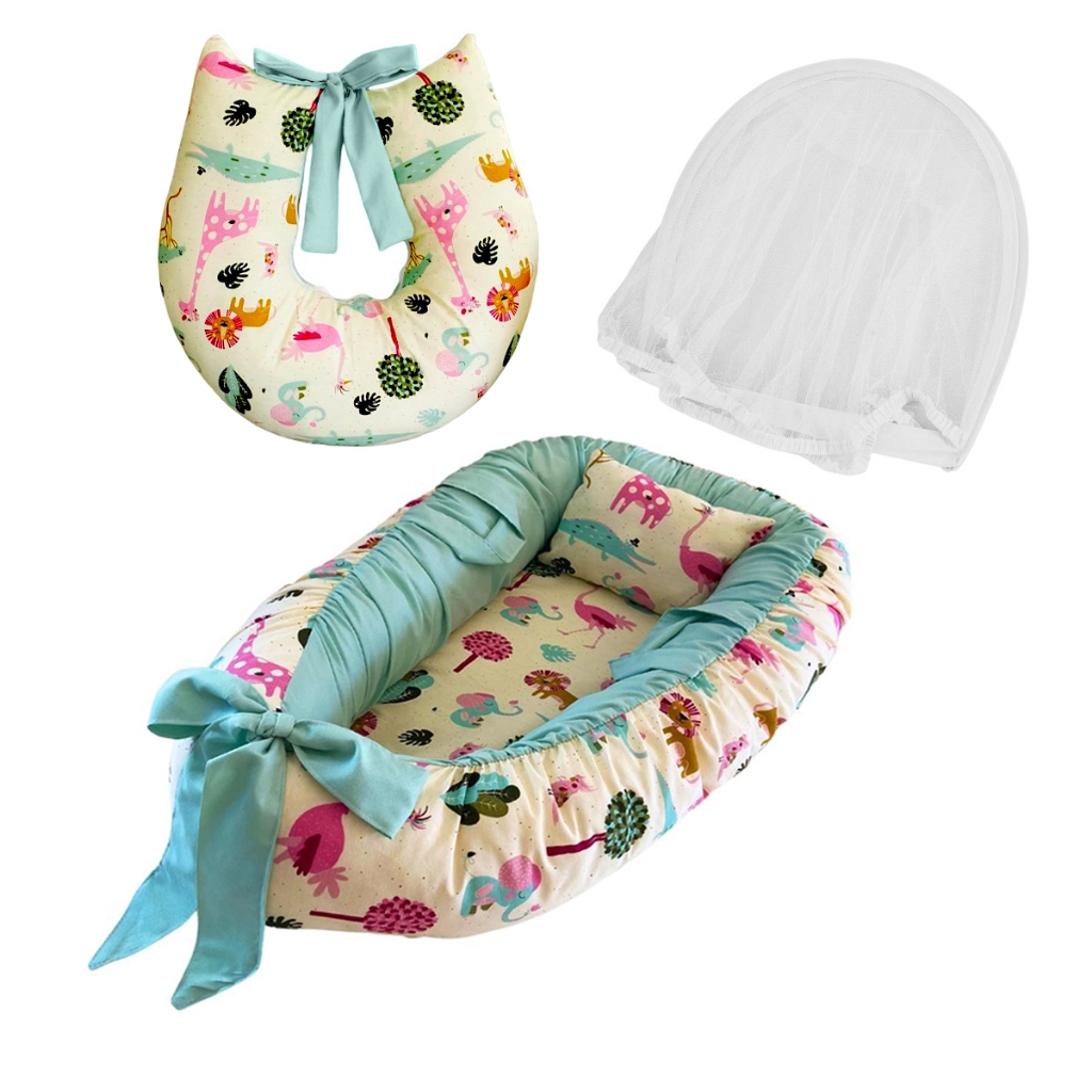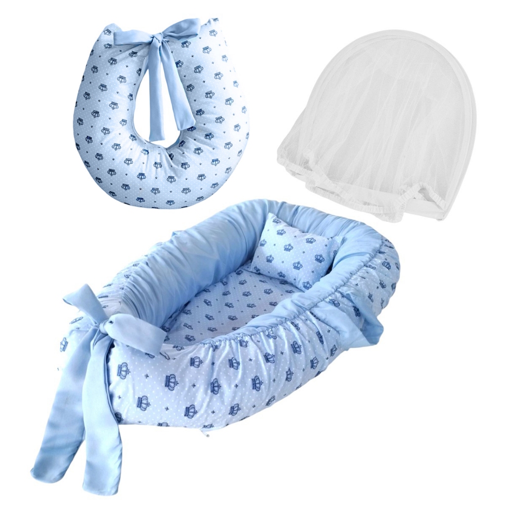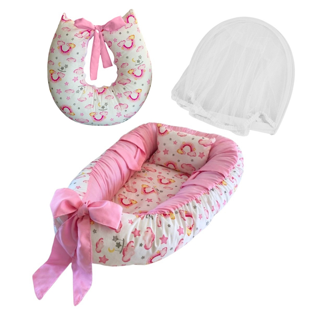 Kit bebe Ninho Redutor de berço com Mosquiteiro protetor + almofada Amamentar