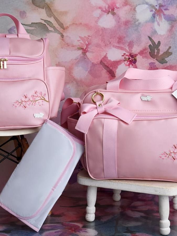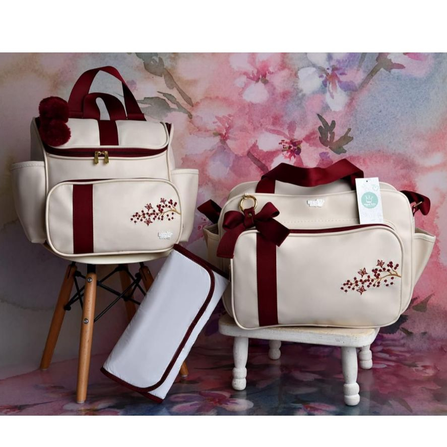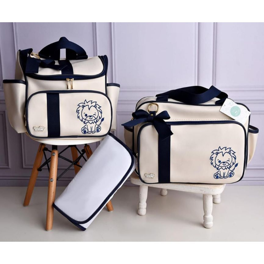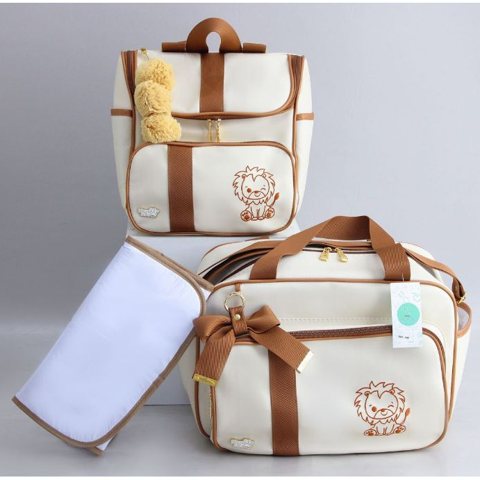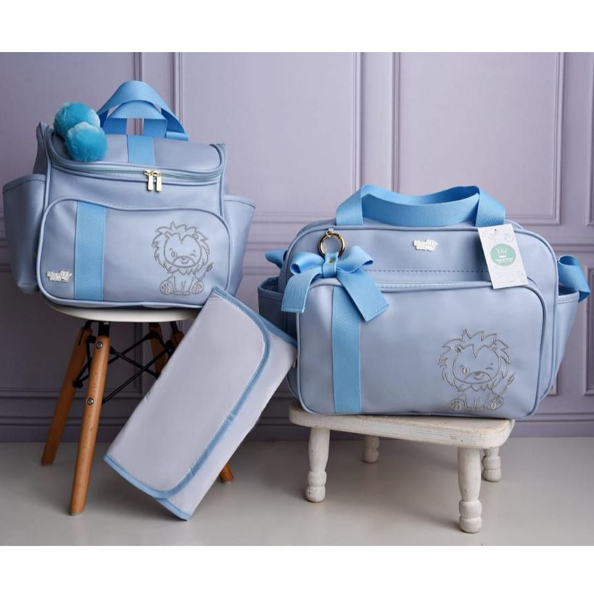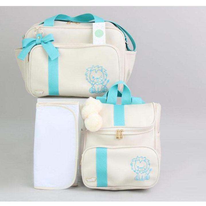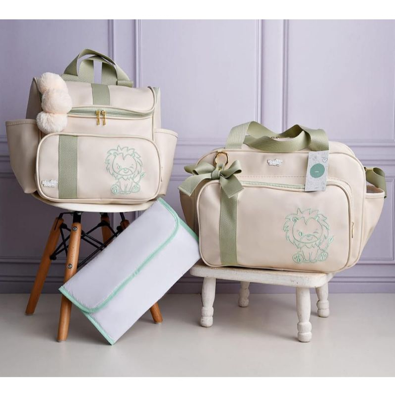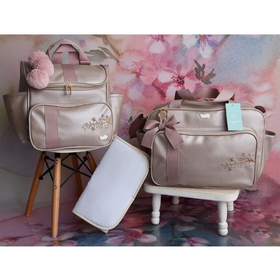 Kit bolsa Gold Leão / Cerejeira para bebê 3 peças com bolso na lateral bordado