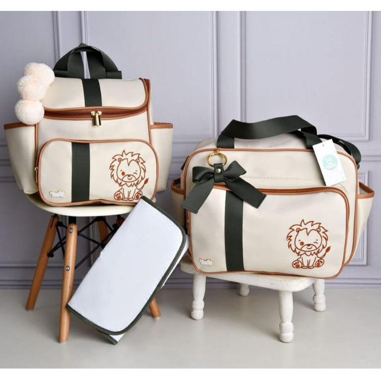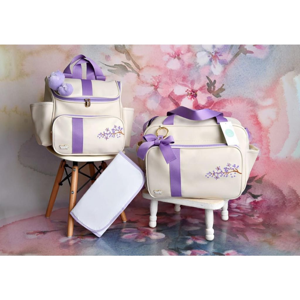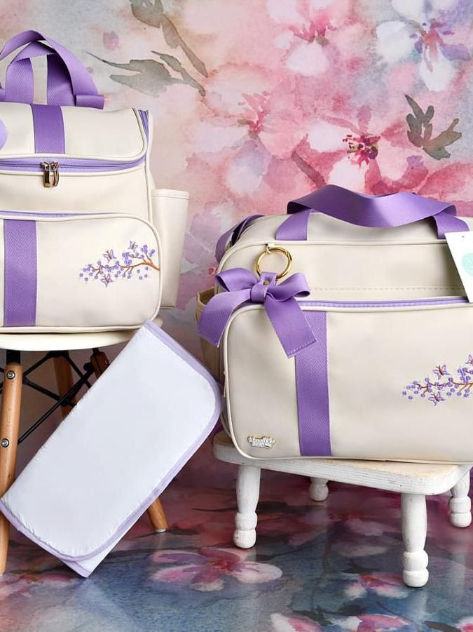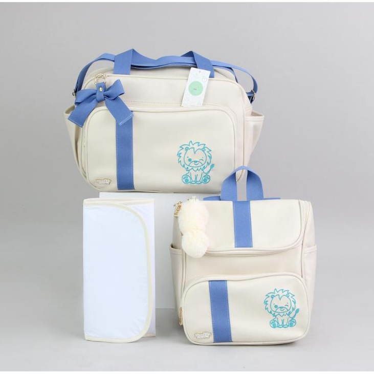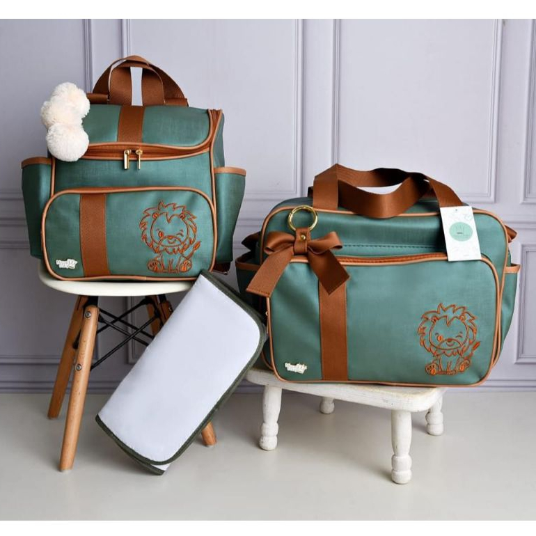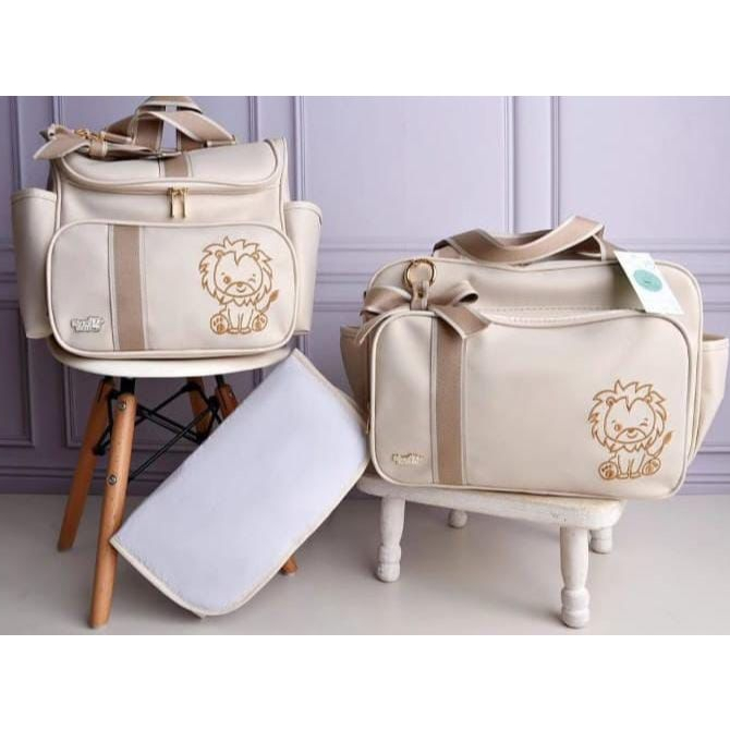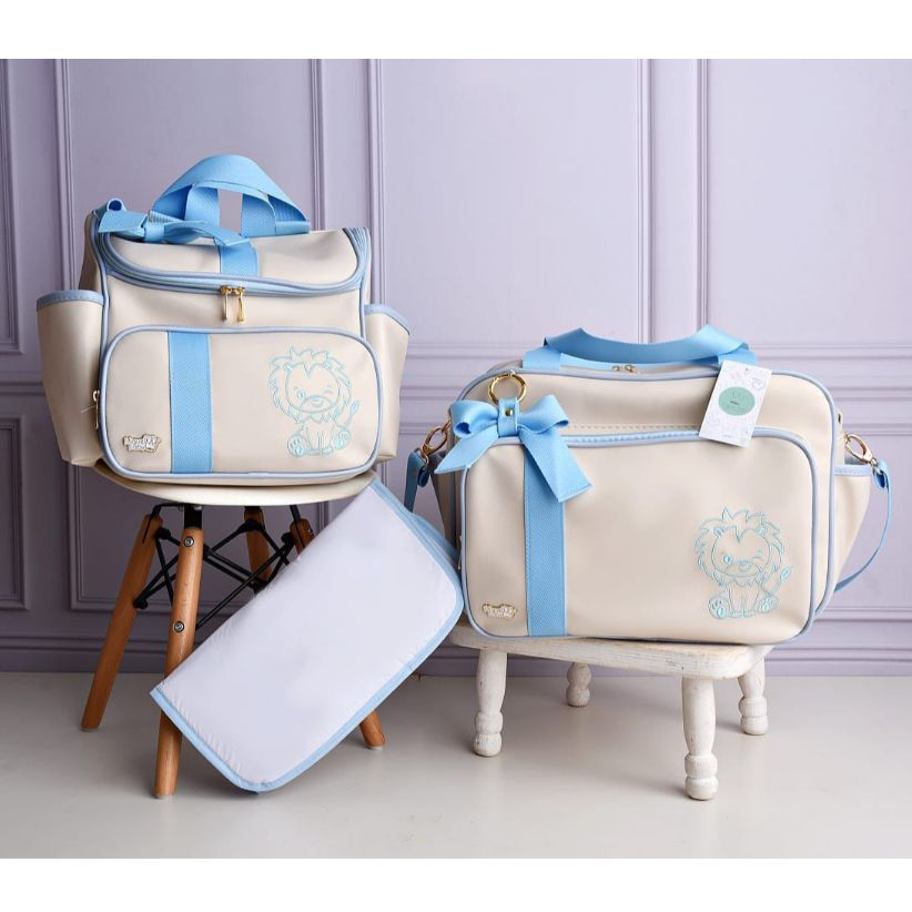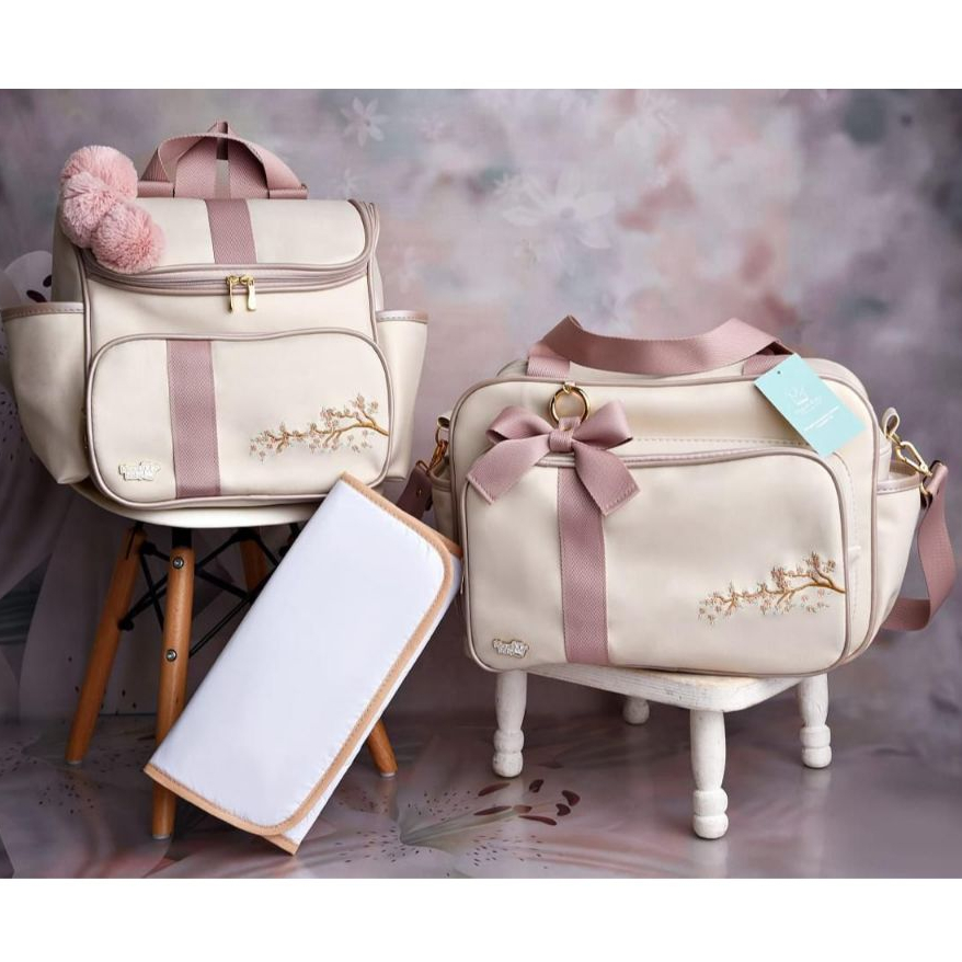 Kit bolsa Gold Leão / Cerejeira para bebê 3 peças com bolso na lateral bordado