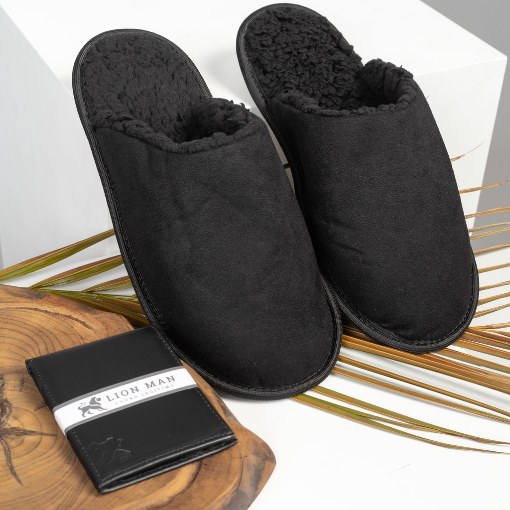 Kit com 1 Pantufa Masculina + 1 Carteira Masculina em Couro Legítimo