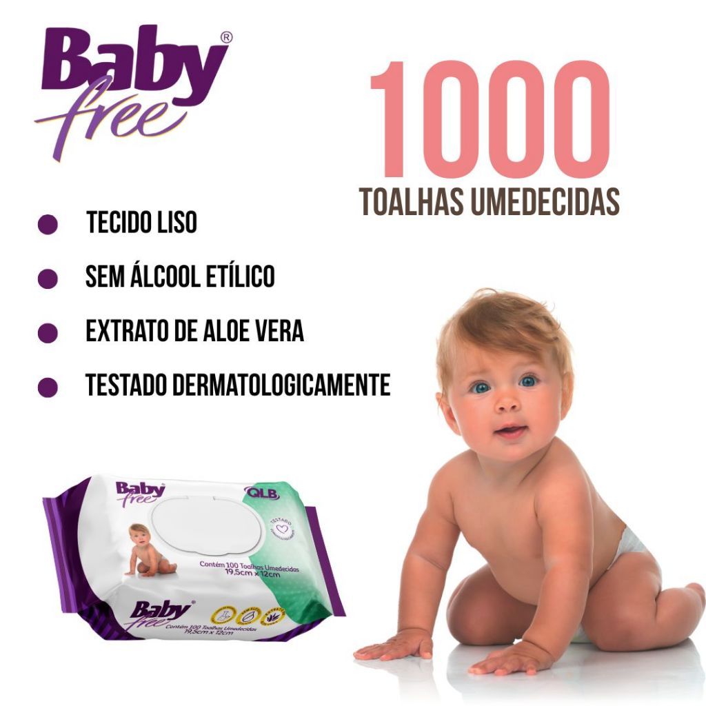 Kit com 10 Baby Free Lenços Umedecidos Com Flip-top Contendo 100 Folhas