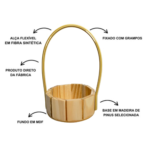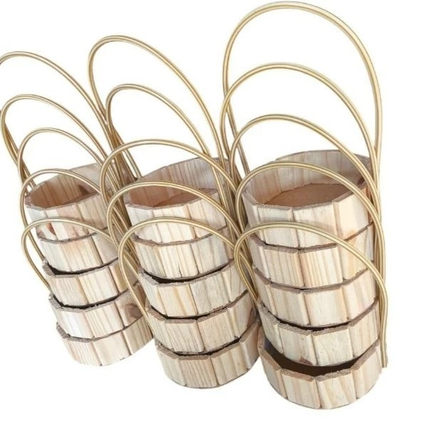 Kit com 10 Cestas Redonda de Madeira 13cm com Alça – Fraldeira Artesanal para Presentes,Dia dos pais