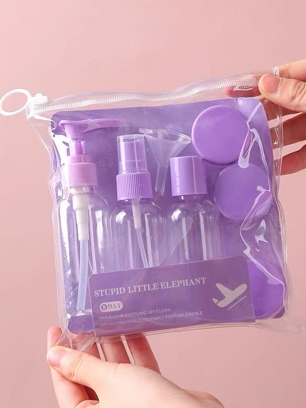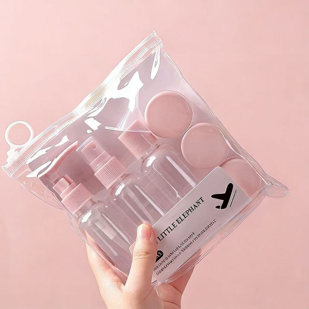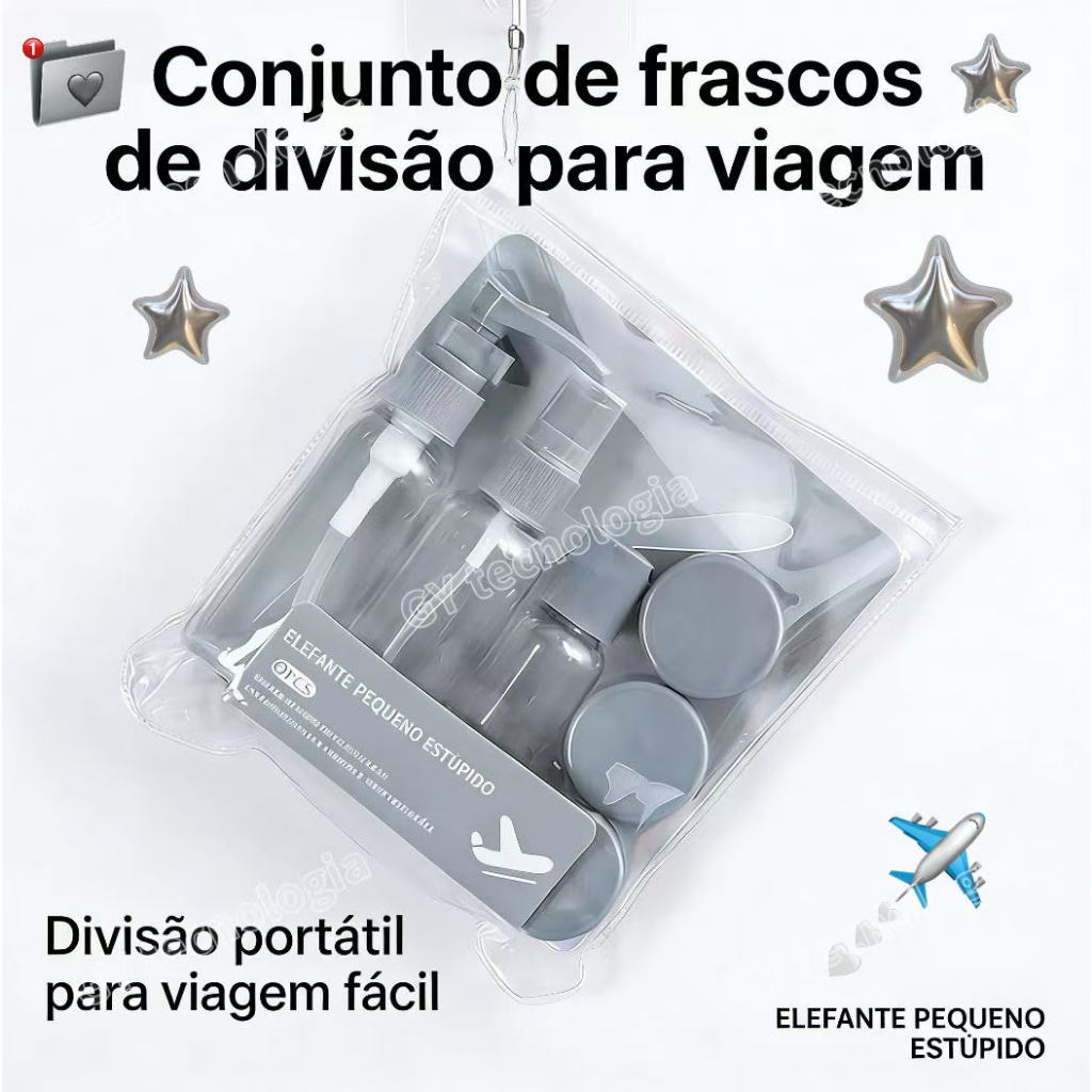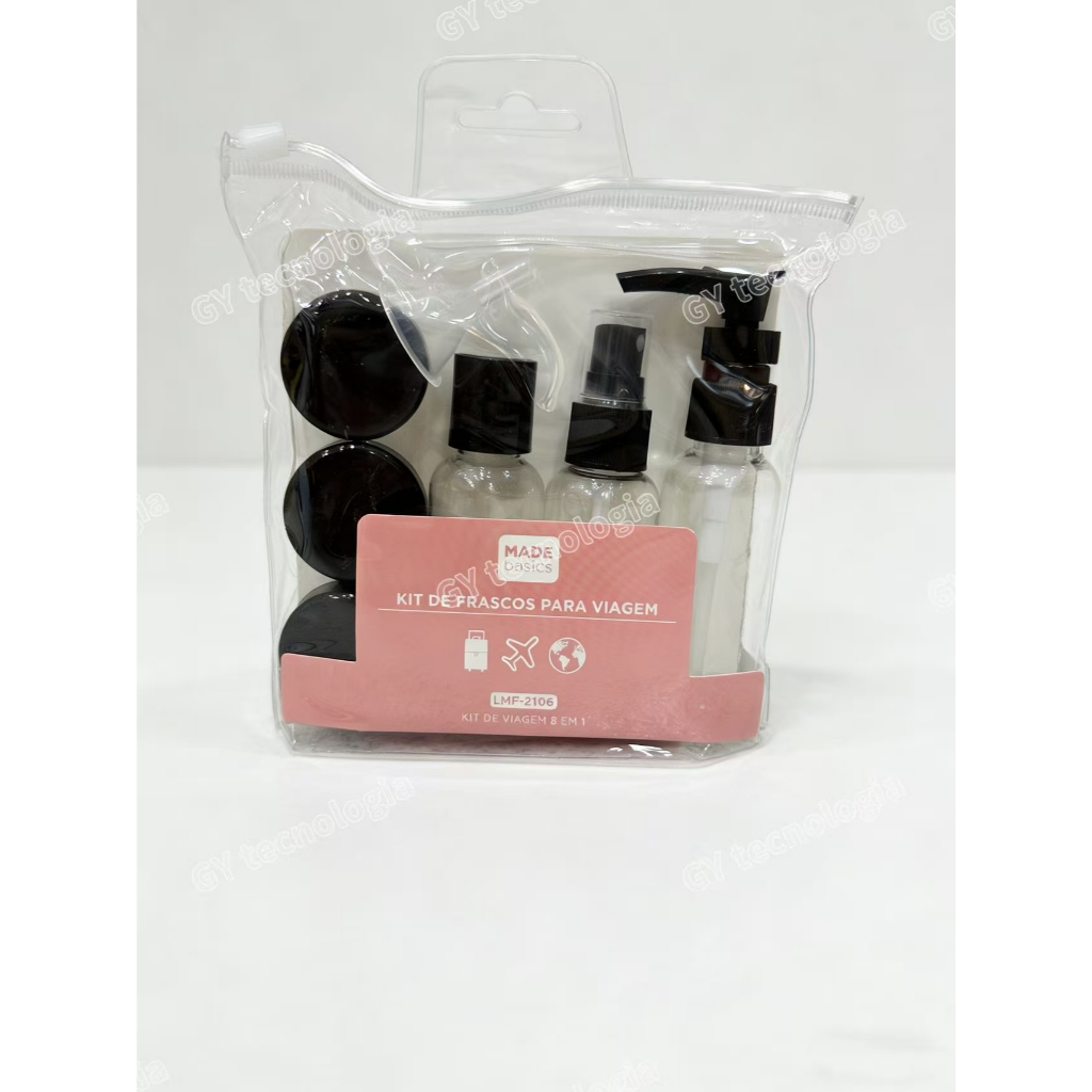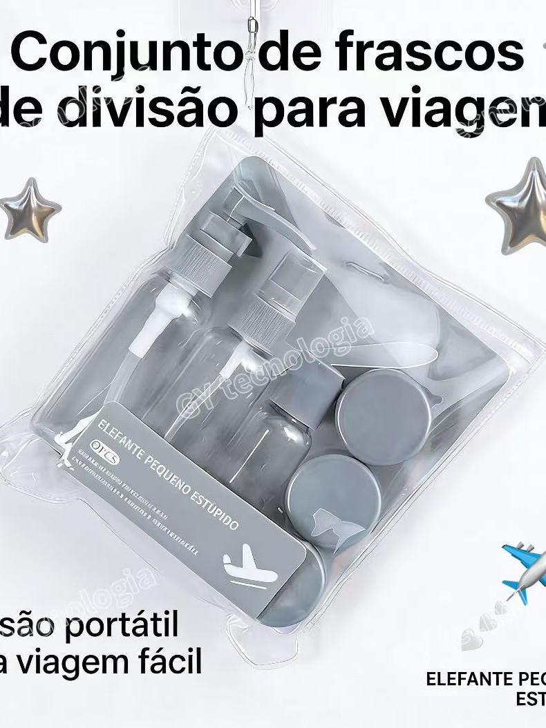 Kit com 9 Frascos para Viagem - Shampoo, Creme, Sabonete e Itens de Cuidados Pessoais