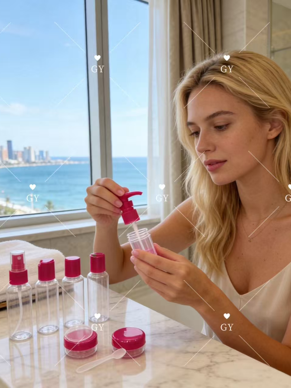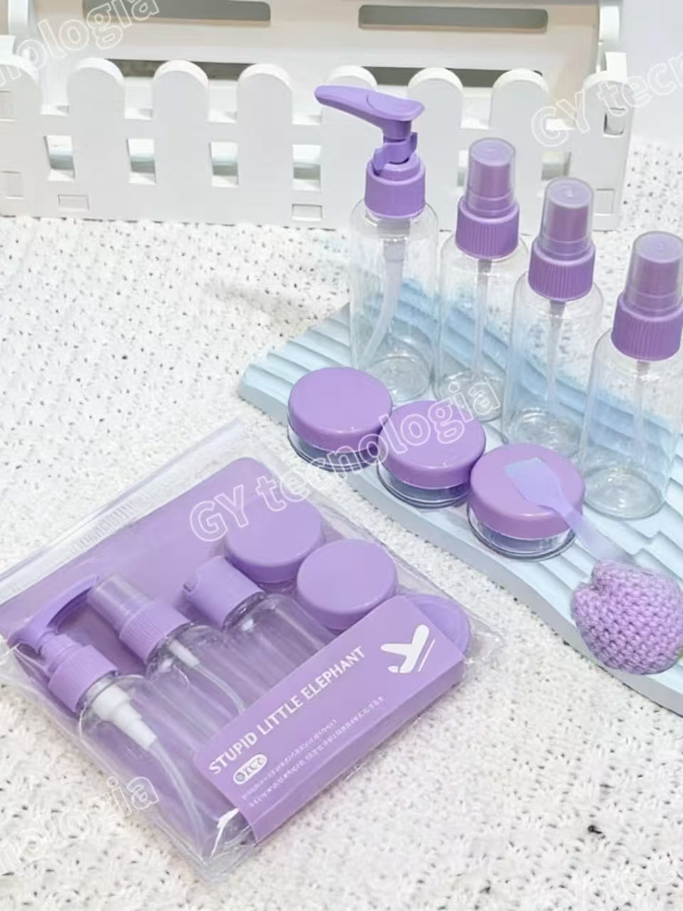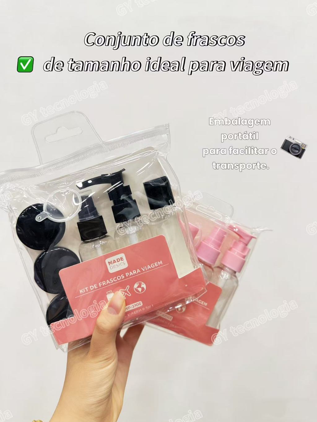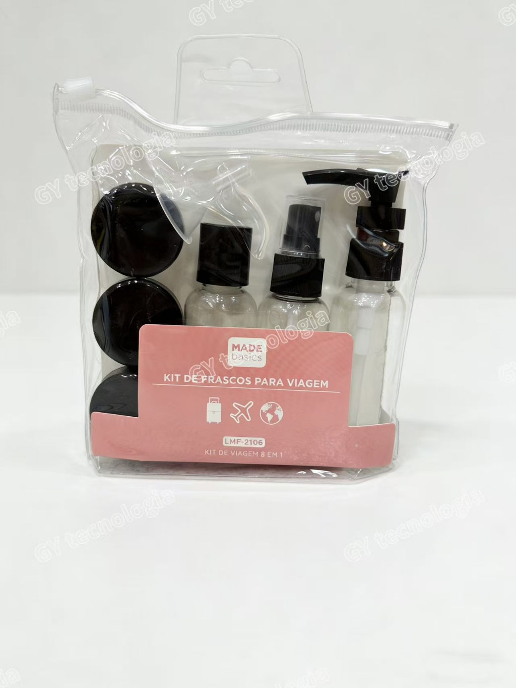 Kit com 9 Frascos para Viagem - Shampoo, Creme, Sabonete e Itens de Cuidados Pessoais