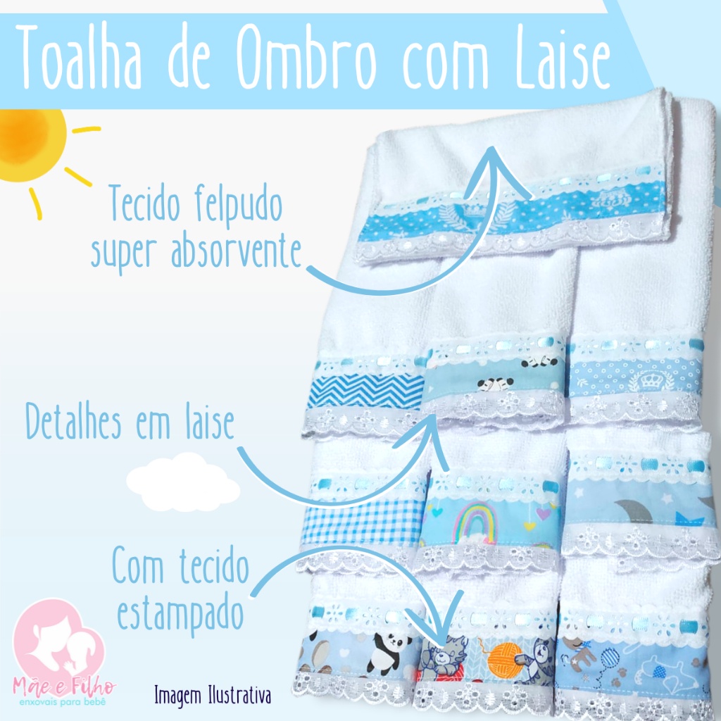 Kit com 10 Toalhinhas Fraldinhas de Ombro Passa Fita Modelo LUXO com Tecido Estampado 100% Algodão