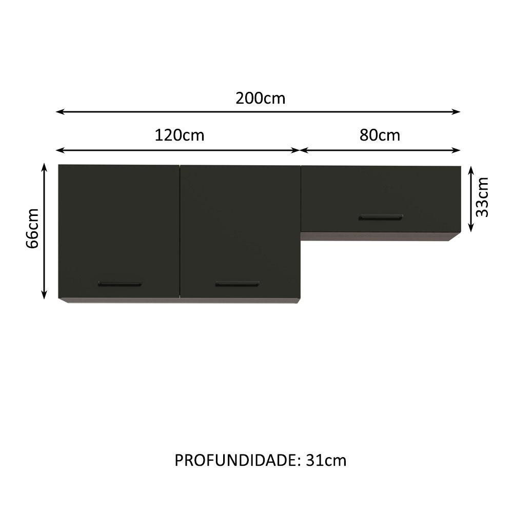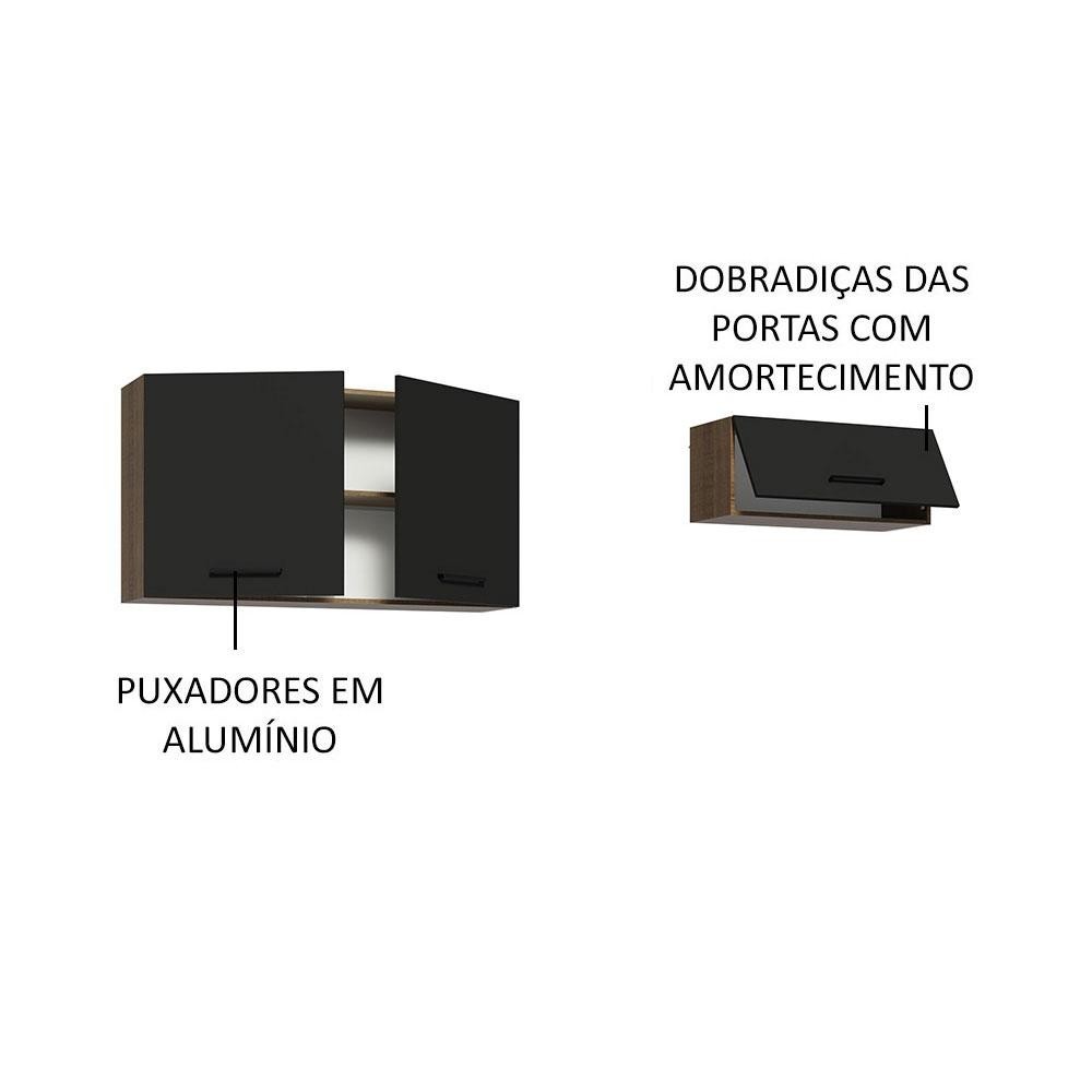Kit com 2 Armários Aéreos Multiuso 3 Portas Rustic/Preto Agata Madesa