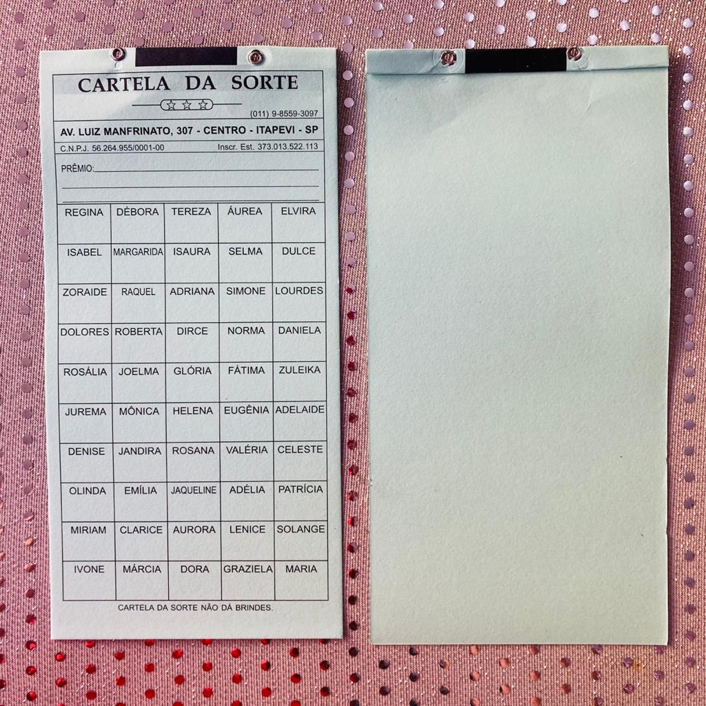 Kit com 2 Cartelas da Sorte com 50 Nomes Femininos