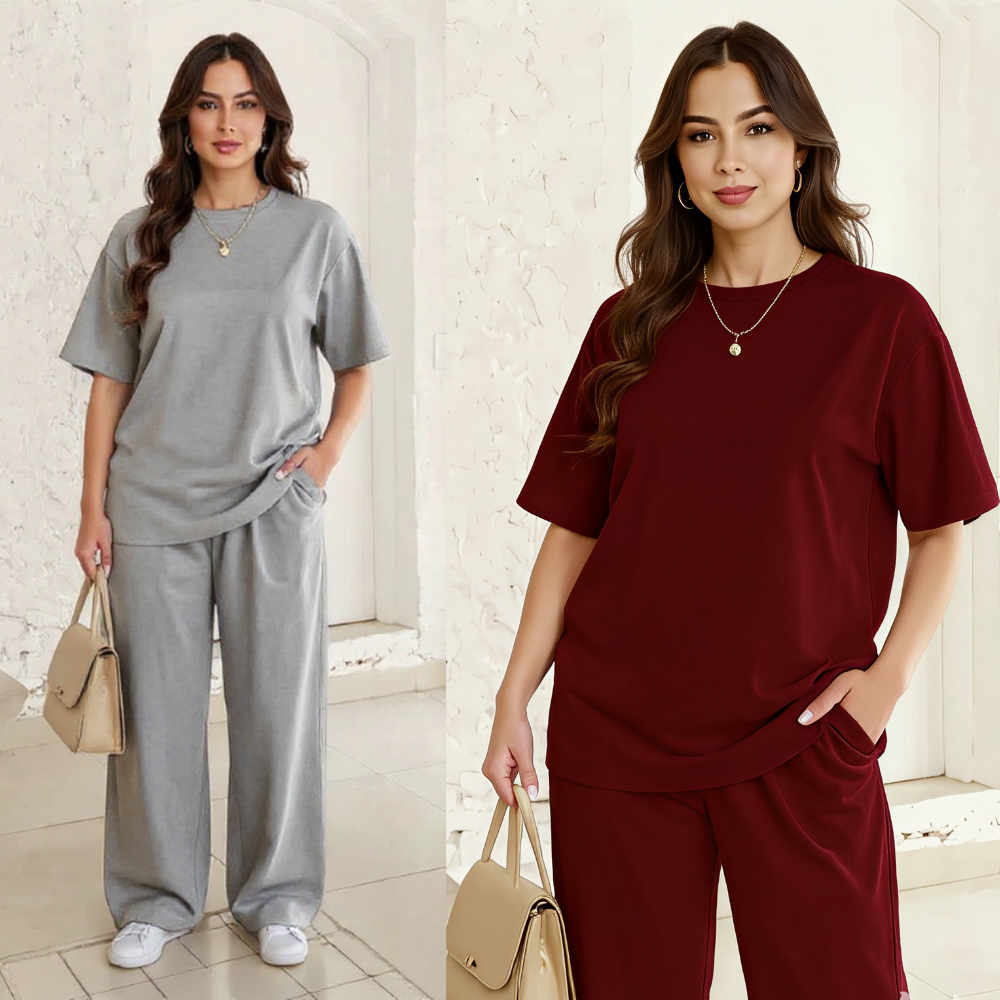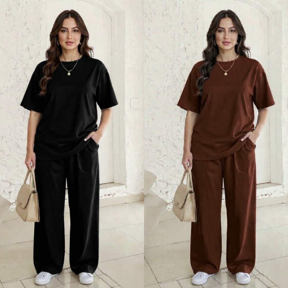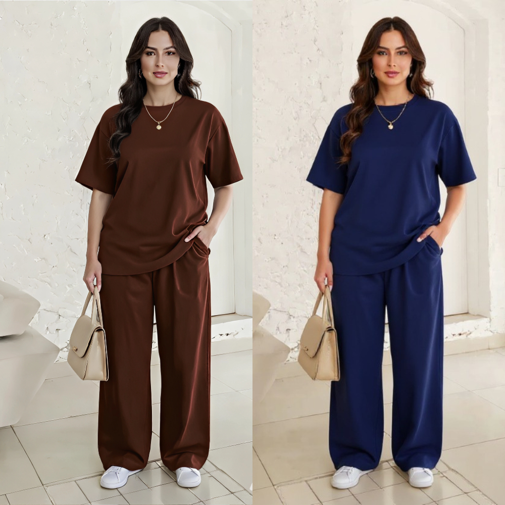 Kit com 2 Conjunto modelo blusa Over e calça pantalona feminina