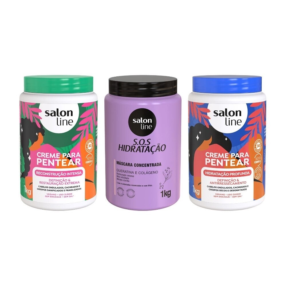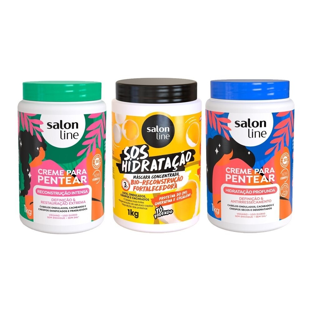 Kit com 2 Cremes Para Pentear Hidratação e Reconstrução + Máscara Bio-Reconstrução Salon Line