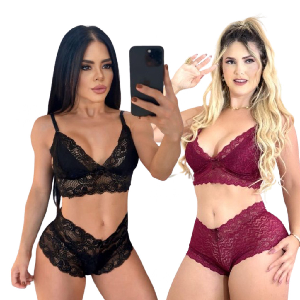 Kit com 2 Espera Marido Feminino Sensual Baby Doll pijama feminino conjunto sexy