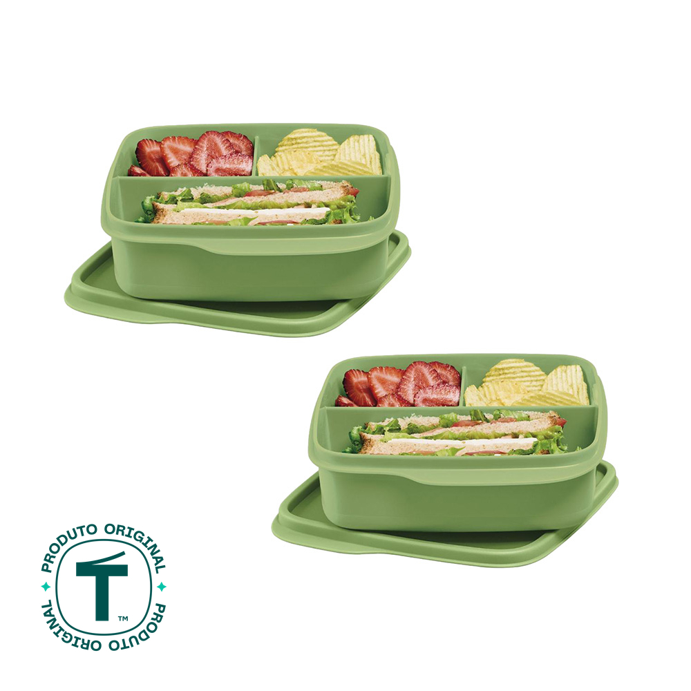 Kit com 2 Potes Herméticos Tupperware Basic Line Divisória Verde 550ml