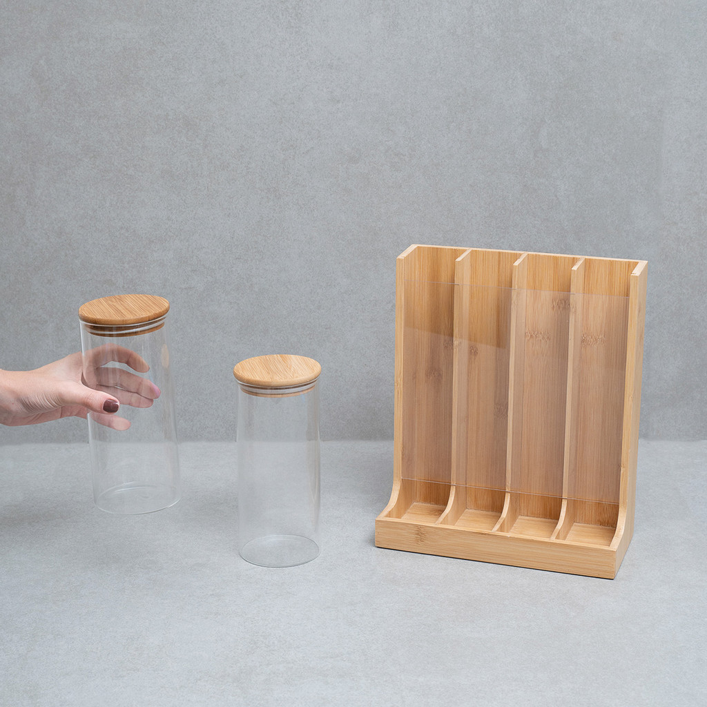 Kit com 2 Potes de Vidro com Tampa de Bambu 800ml E Porta Cápsulas de Bambu - Oikos