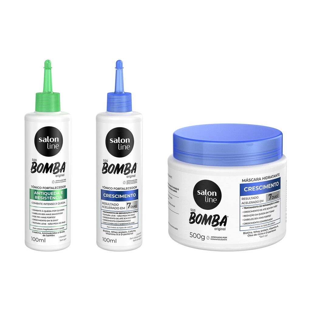 Kit com 2 Tônicos Crescimento Acelerado e Antiqueda + Máscara de Hidratação SOS Bomba Salon Line