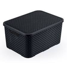 Kit com 2 caixa cesto organizadora com tampa preta rattan 7 litros