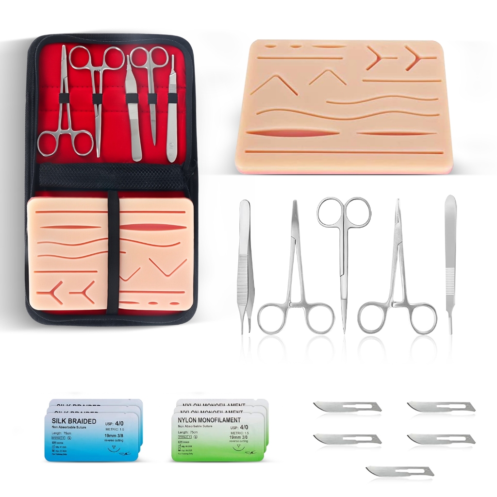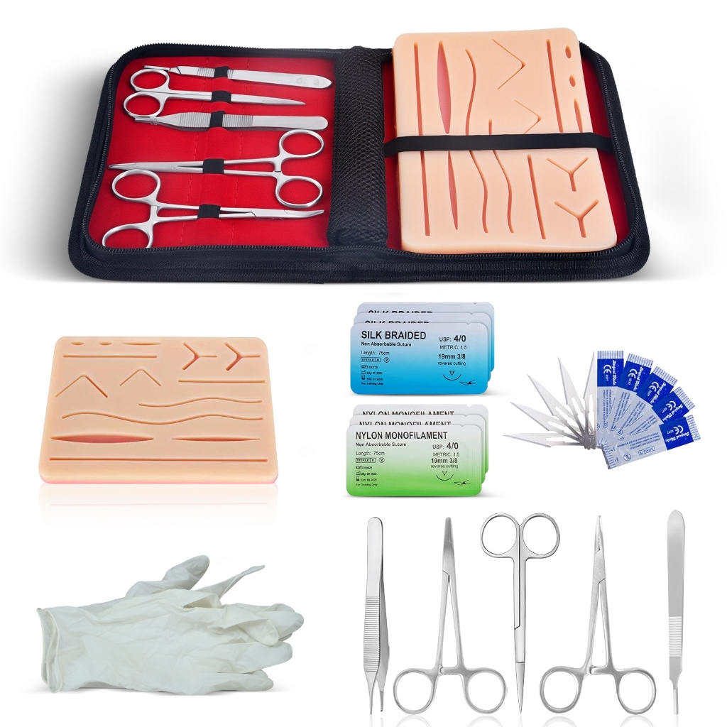 Kit com 25 pecas Simulador De Sutura Treino Com Pinça Pinca Veterinaria