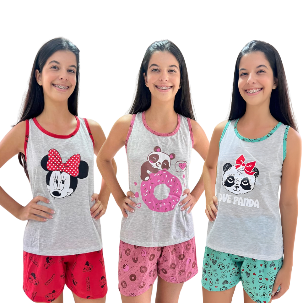 Baby Doll Feminino Regata Estampado Confortável Leve Pijama Promoção