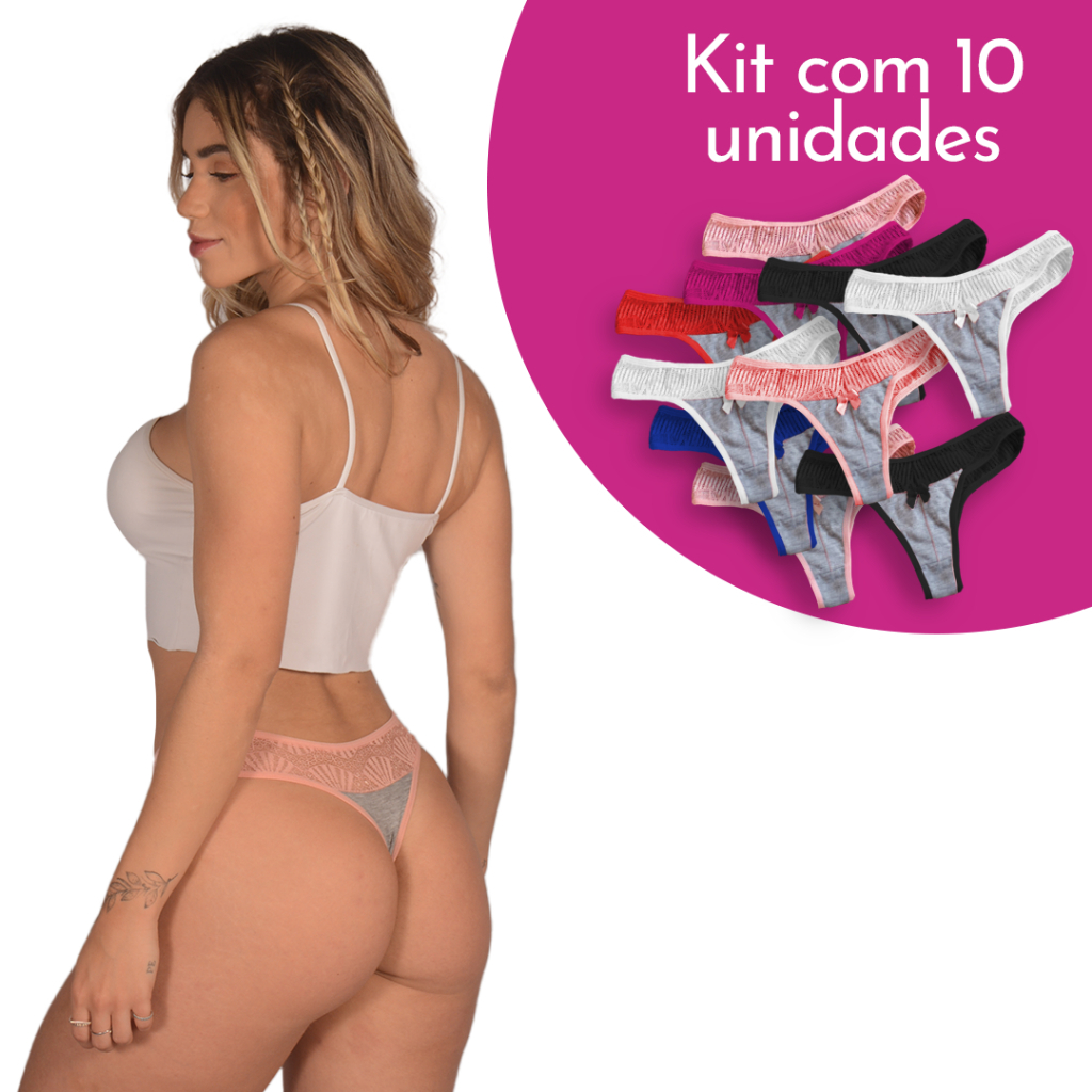 Kit Calcinhas Fio Dental Calcinha com Detalhes em Renda Envio Rápido Imediato Preço de Fábrica Tanga em Algodão Cotton