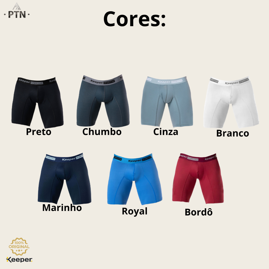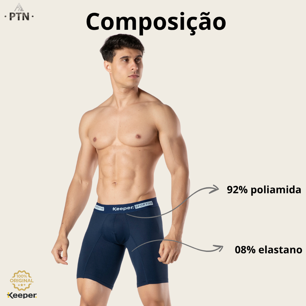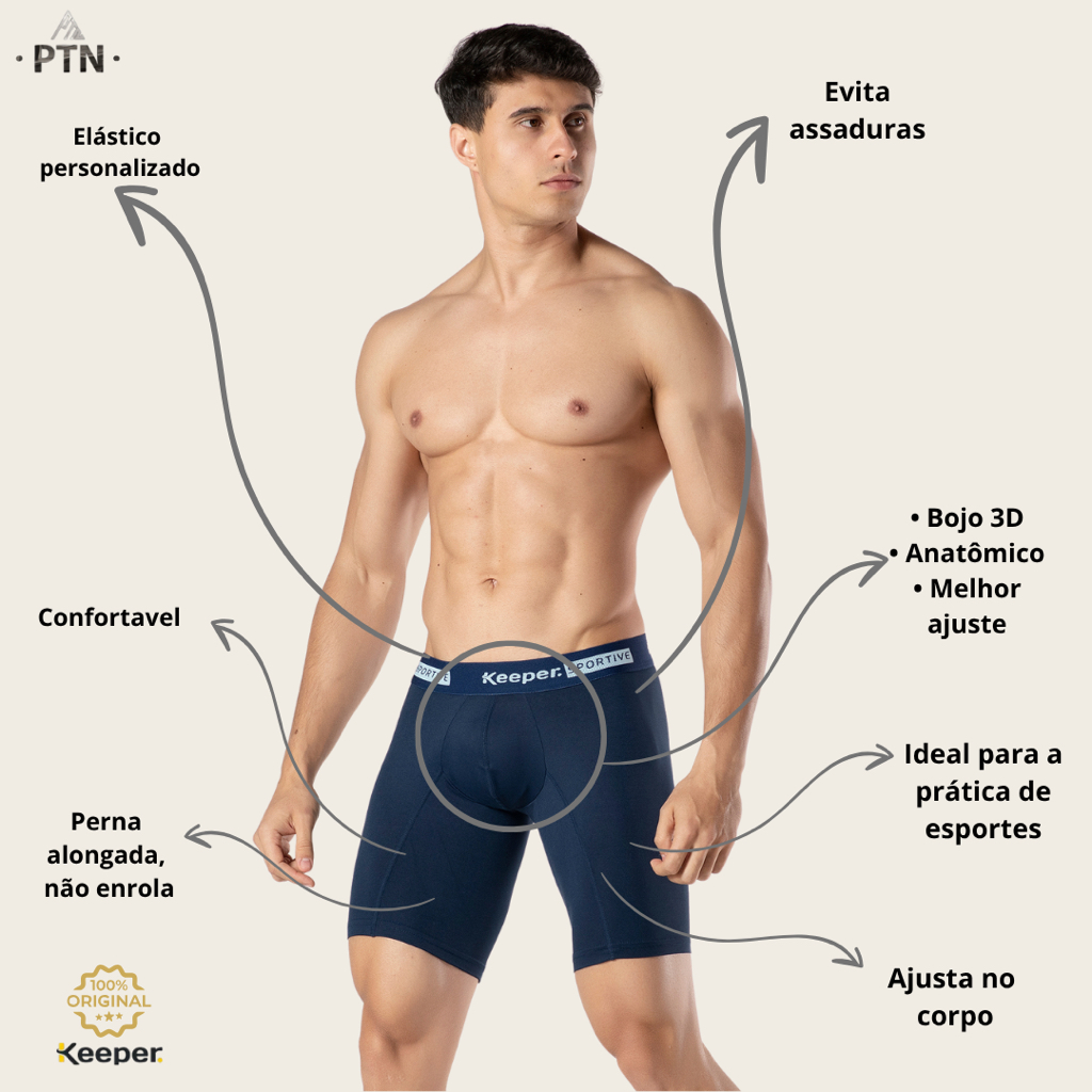 Kit com 3 Cueca Boxer keeper Bermuda Long Leg Esportiva Anti Assaduras Lisa Masculina Perna Comprida