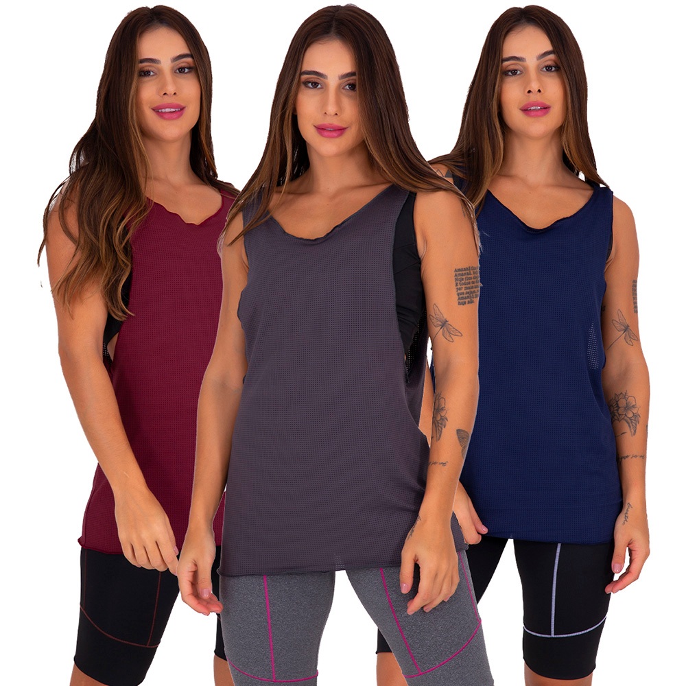 Kit com 3 Regatas Dry Fit Poliamida Academia